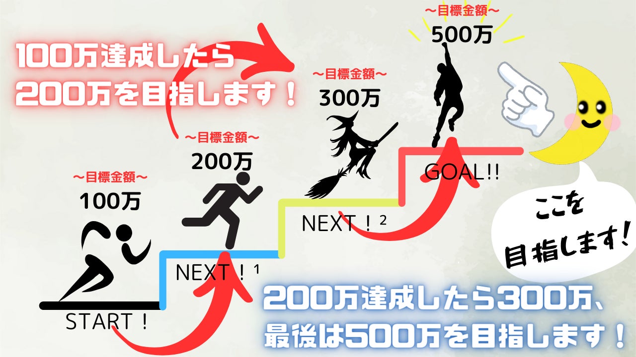 第一目標金額(100万円)を達成したら、ネクストゴールを目指します。