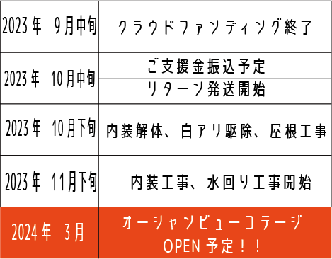 目標金額を達成し、超えた場合は次の内装工事費用(内壁、床材等)に全額使わせて頂きます