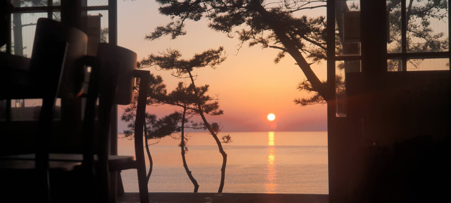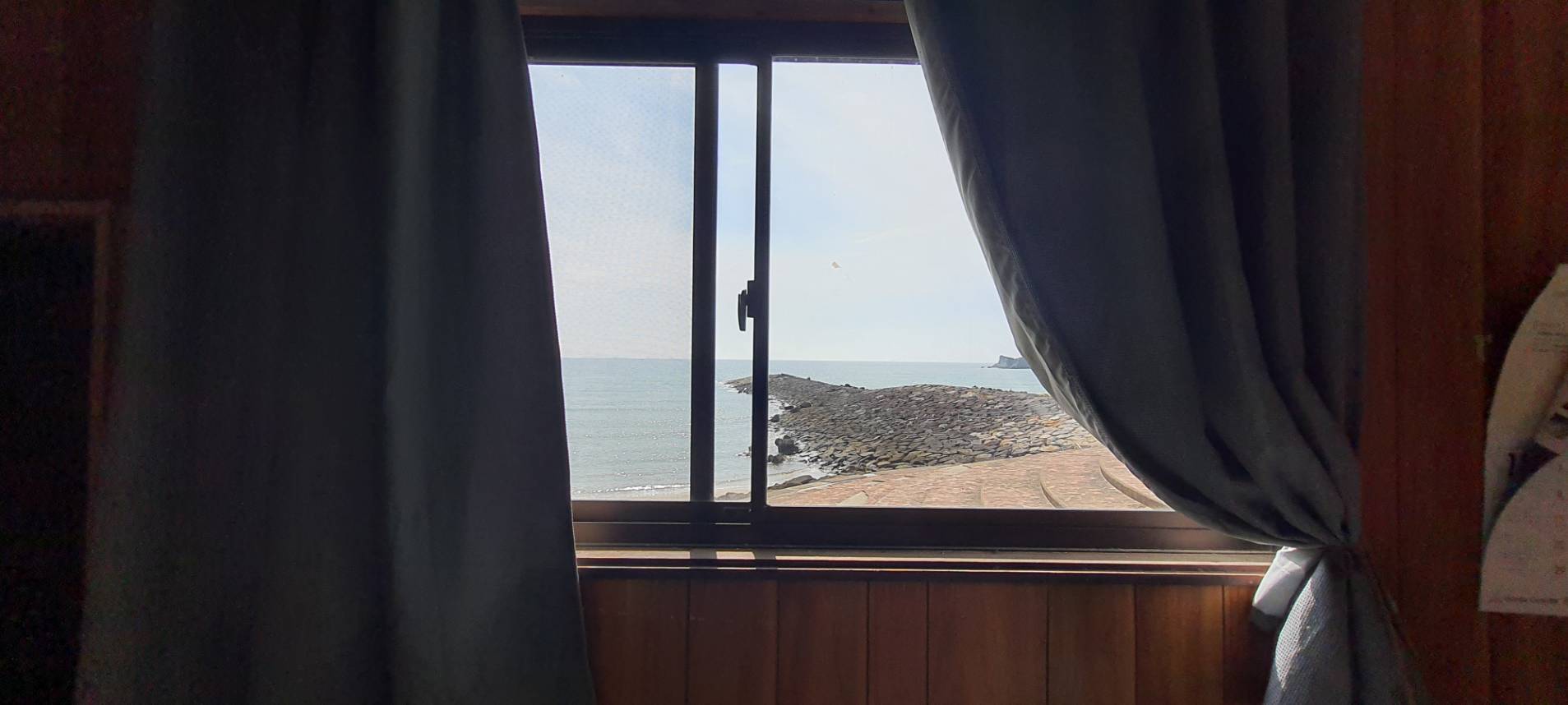 窓から見えるのはビーチと青い海