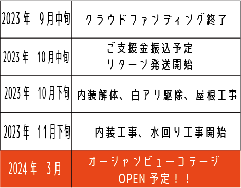 目標金額を達成し、超えた場合は次の内装工事費用(内壁、床材等)に全額使わせて頂きます