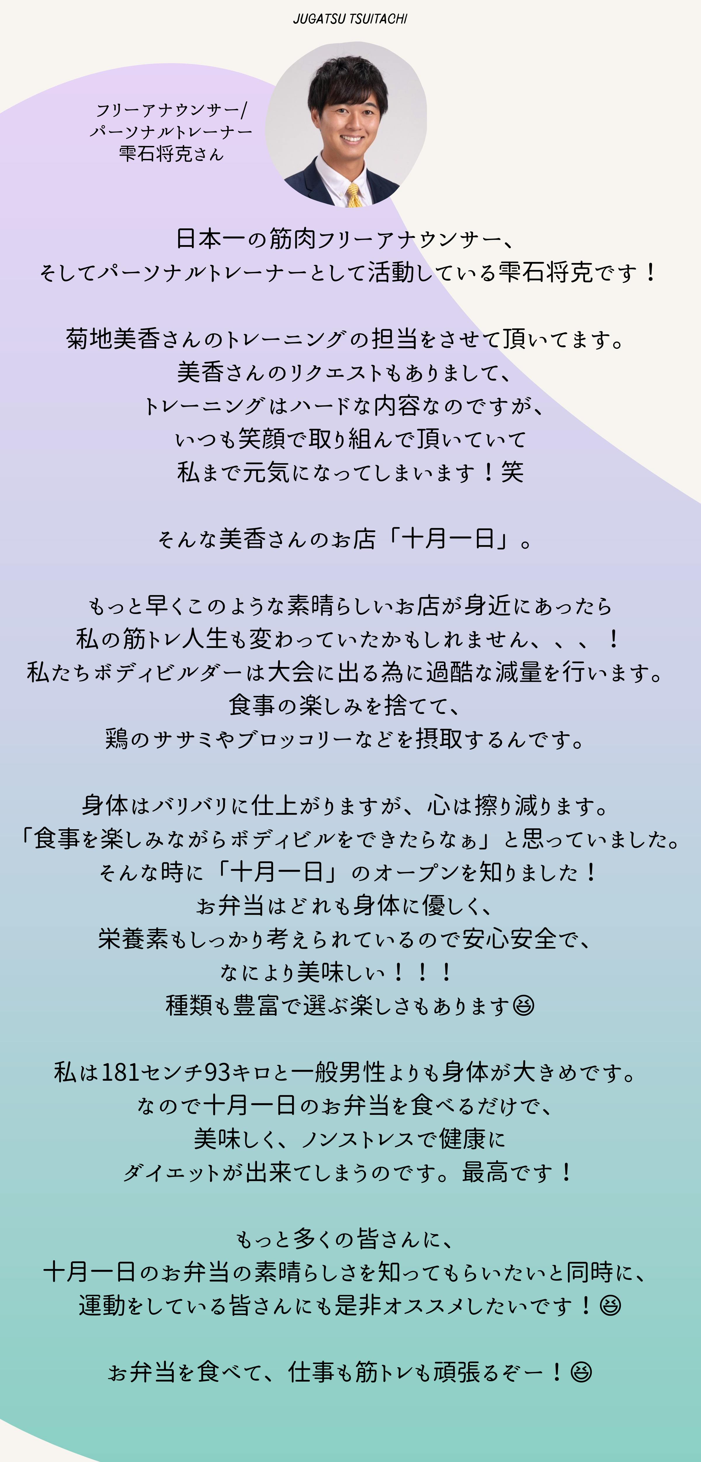 十月一日のお弁当が、添加物という物とどのように付き合っていくかを考えるきっかけになったら嬉しいなと思っています。