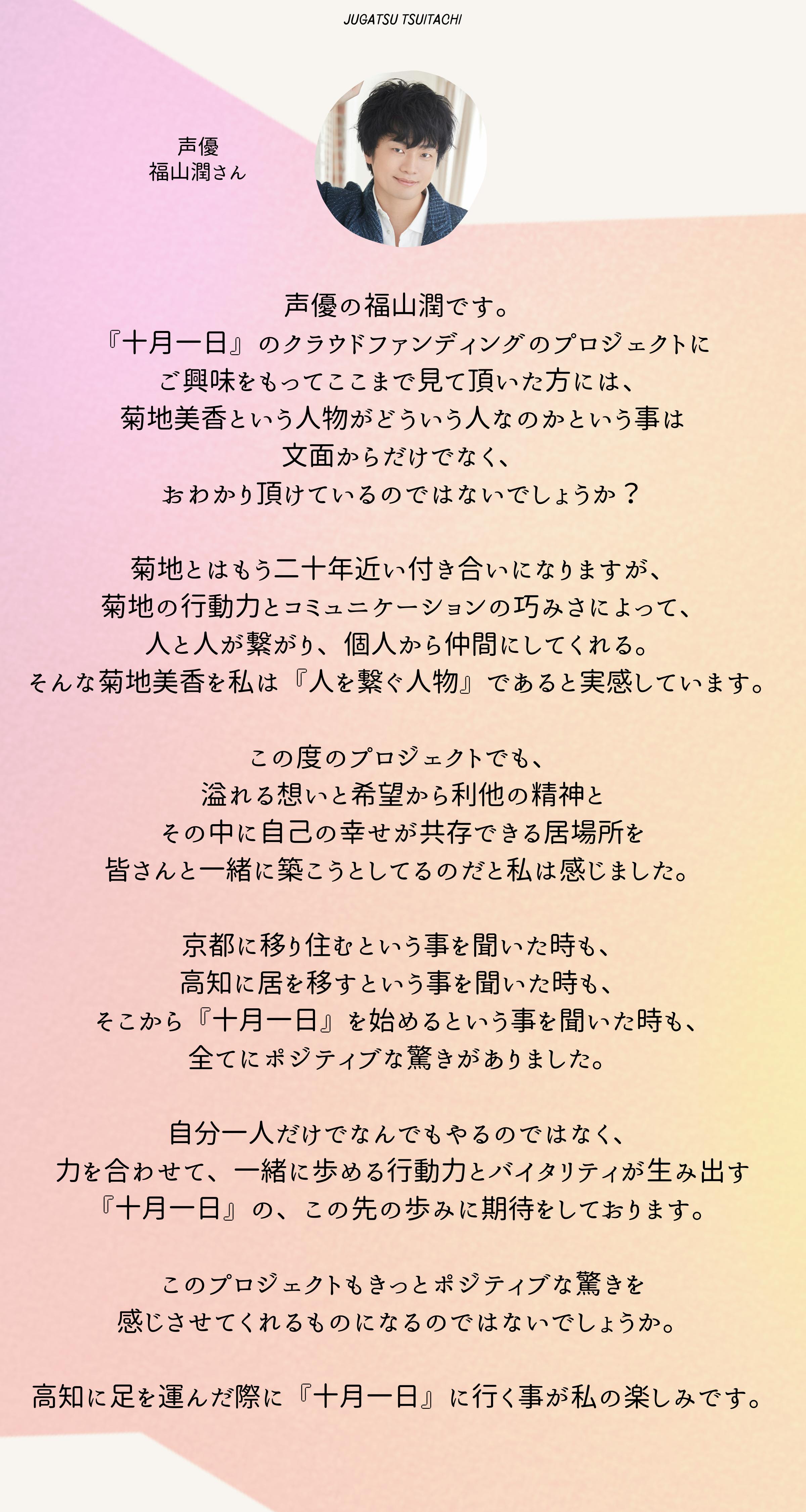 ここまで皆様にご支援いただき、十月一日はスタート時には想像もしていなかった素晴らしい環境に生まれ変わります。