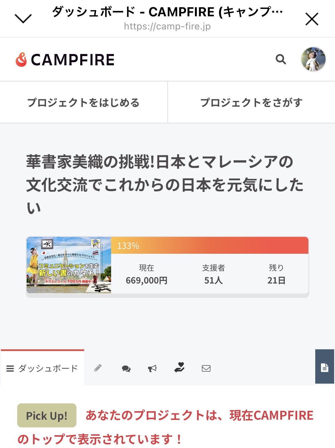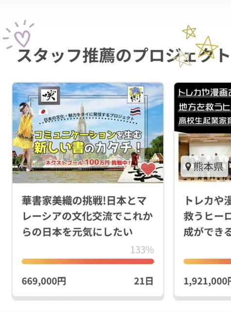 なんとクラファンのトップページに