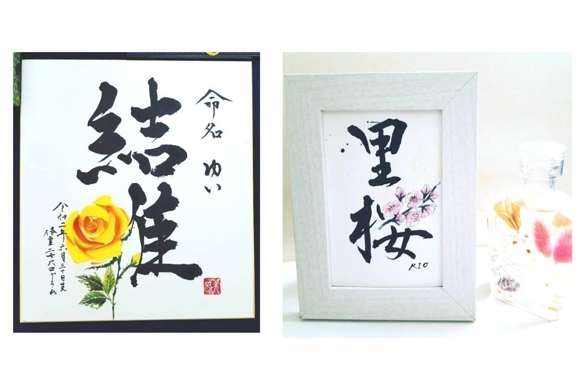 例えば、命名書をご依頼いただく際、誕生花、季節の花などと書を書かせていただいています。お好きな色もヒアリングし、オーダーメイドで華書®を書くと、とても喜んでいただけました。