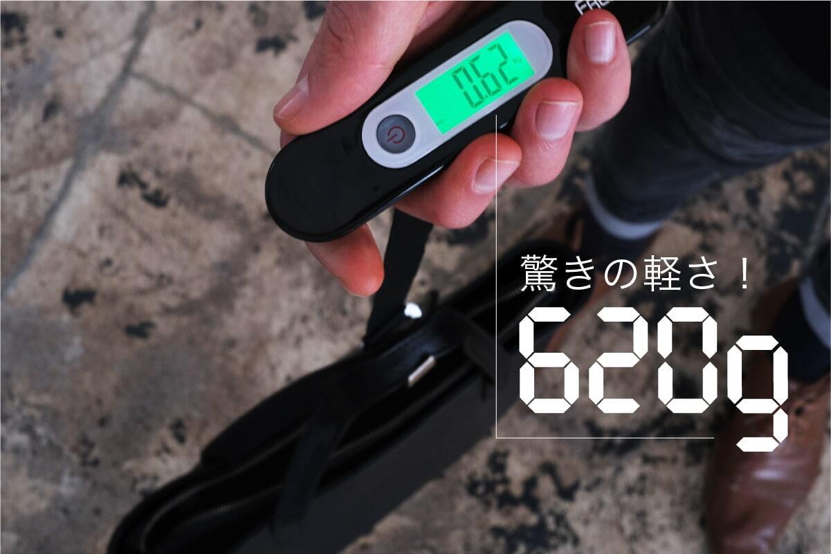 高級感あふれる本革なので重そうに見えますが、その見た目からは想像できない「軽さ」です。素材と設計の工夫でわずか620gの軽さを実現ました!これは、一般的な本革トートバッグの半分程度の重量です。