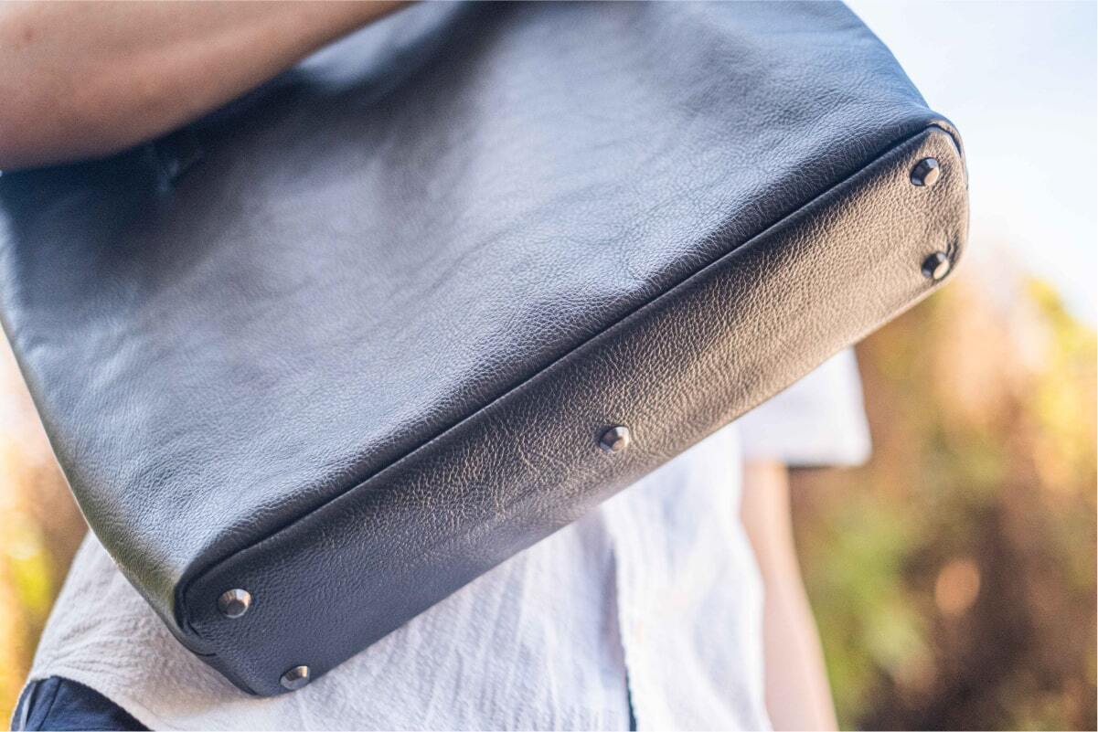 ハンドルは手にフィットするフルレザーの約2.0cm幅を採用。細いハンドルは長時間持つのが辛いため約2.0cm幅で仕上げました。