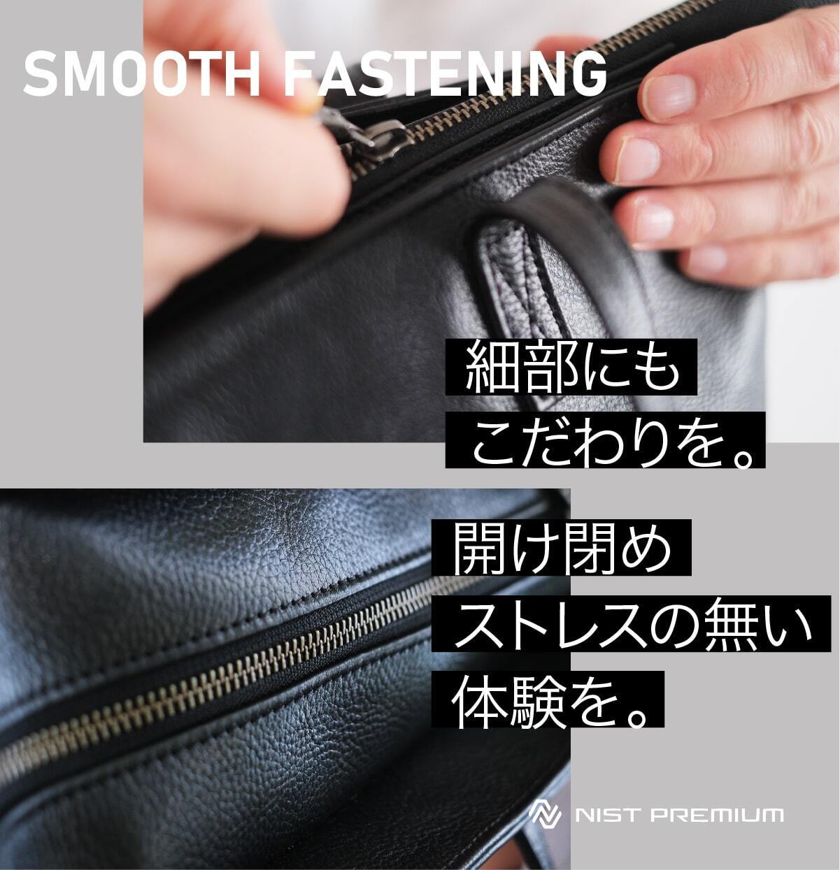 機能性とキップ牛革をベースにしたシュリンクレザーを贅沢に使用した上質なプロダクト。有名なイタリア高級ブランドでも使用されるキップレザー。その質感は持つ人のイメージをワンランクアップさせます。