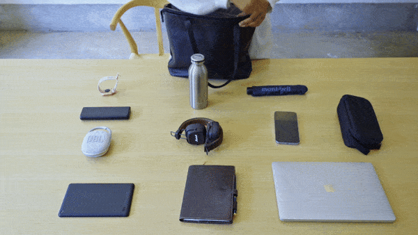 これだけの荷物がしっかり入るので、ビジネスでもプライベートでも大活躍。