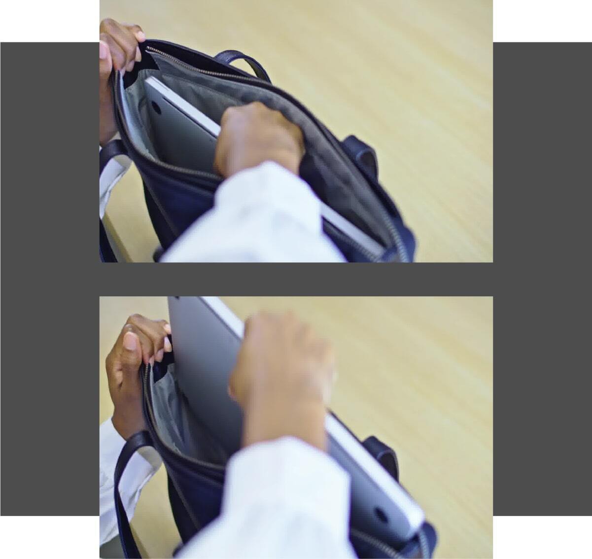 スマホの出し入れにストレスを感じない。小さな事かもしれませんが、新時代のトートバッグに必要な機能です。