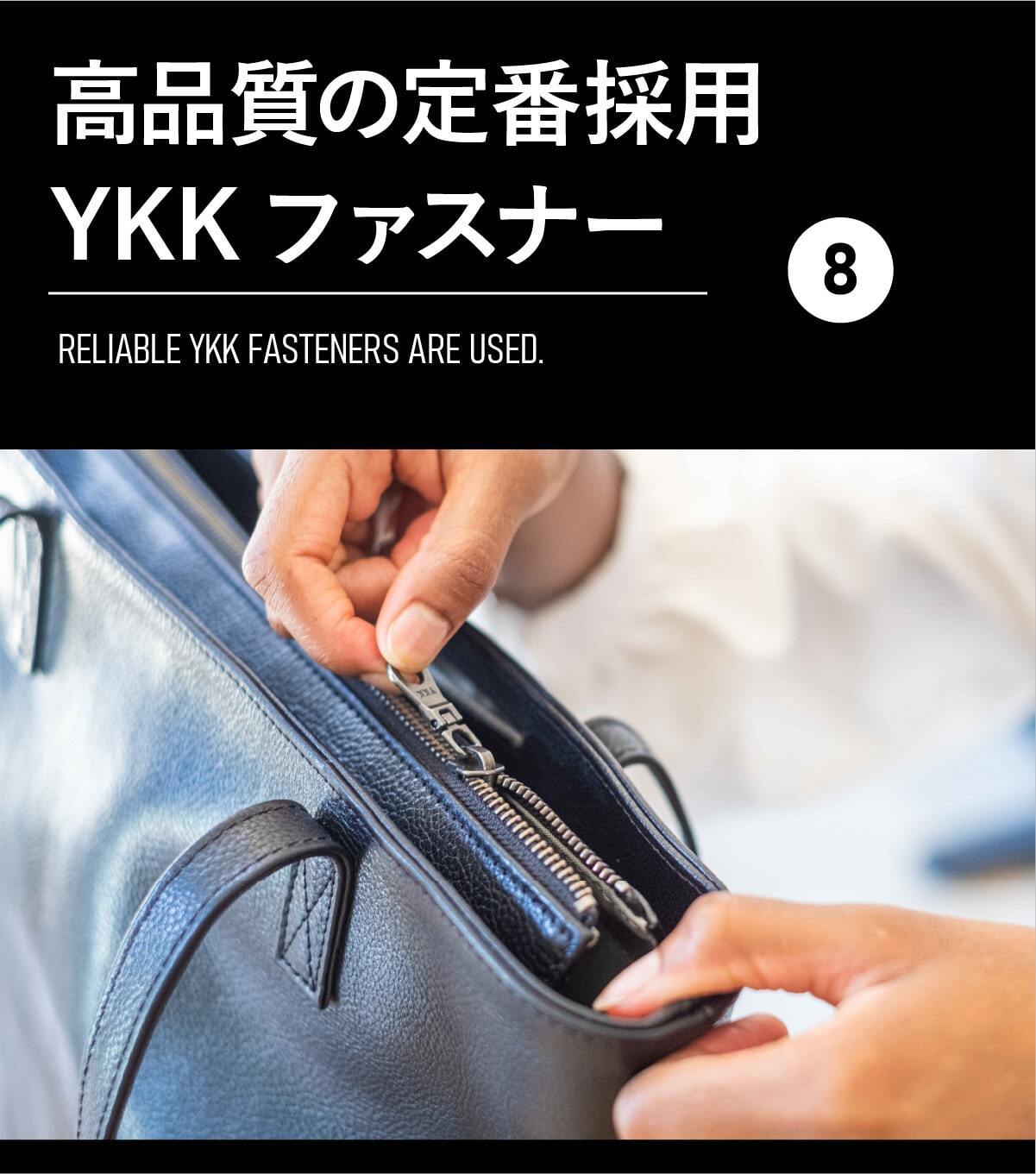 ファスナーは信頼の品質を提供してくれるYKK製品を採用。定番パーツですが、安価な部品と比べても快適で長くお使いいただけるように配慮した設計をしています。