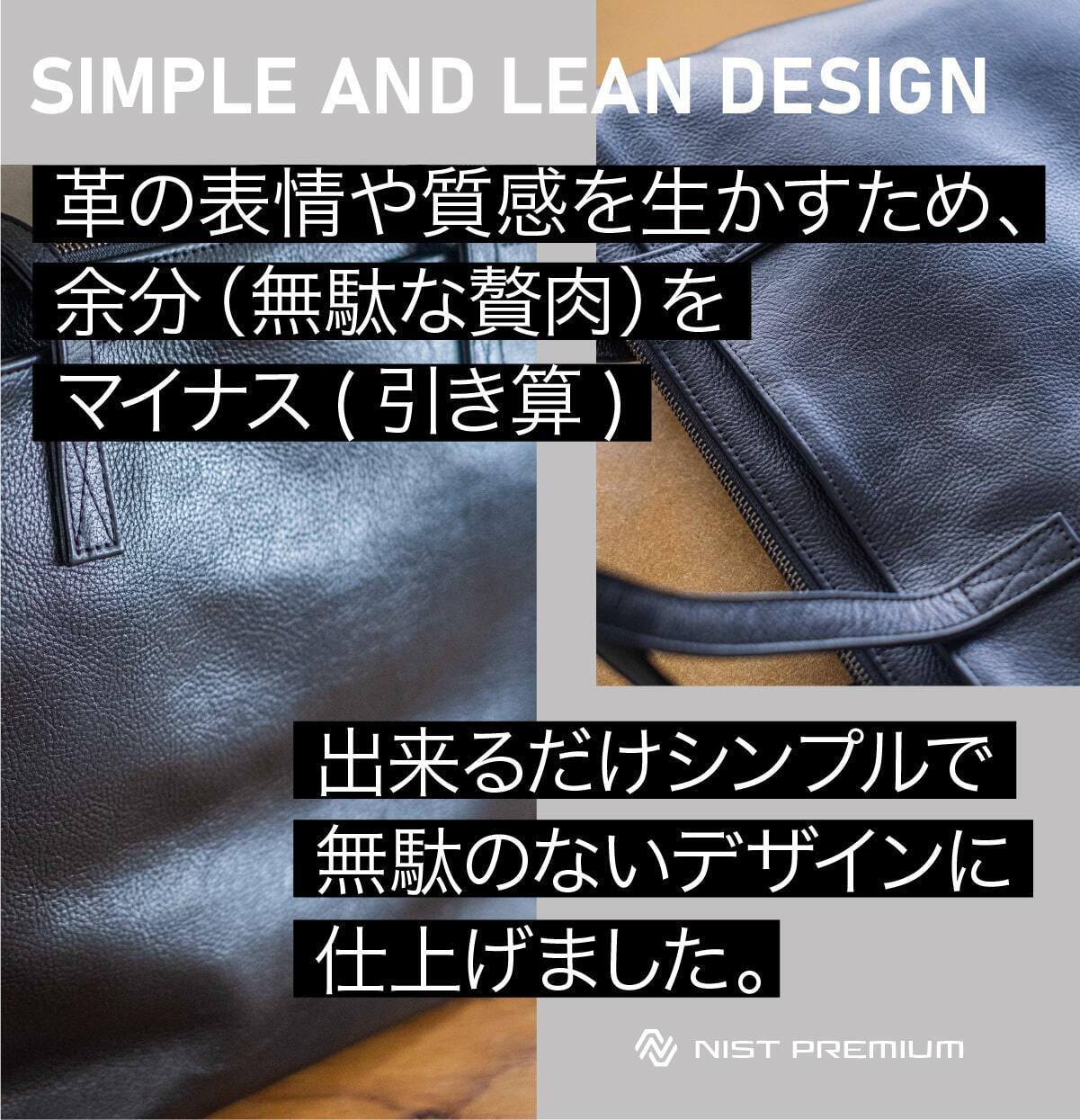 ミニマルレザートートバッグ「NIST・PREMIUM」は、革の表情や質感を生かすため、余分をマイナス(引き算)していき、出来るだけシンプルで無駄のないデザインに仕上げました。