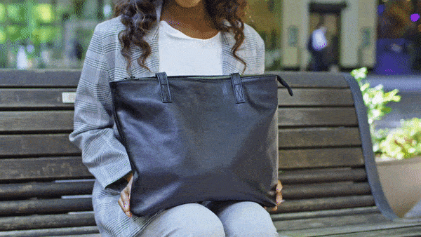これは女性が膝の上に乗せても、鞄が隣の人に当たらないサイズとなっております。鞄の中身を取り出す余裕もあるので、車内で荷物を取り出したい時もサッと行う事が出来ます。