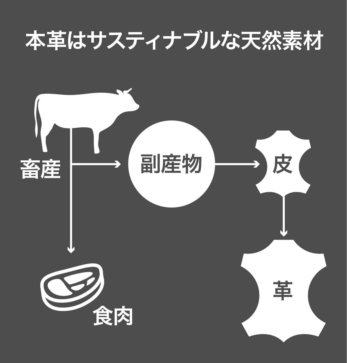 本革は畜産副産物を有効活用したエコでサスティナブルな天然素材です。