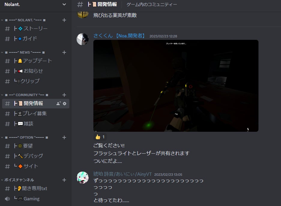 今作を開発にあたるDiscordサーバーのコミュニティとなっておりますNolantの開発での要望やデバック、テストプレイなど行っています。興味のある方はぜひ下の「サーバーへ参加する」へ
