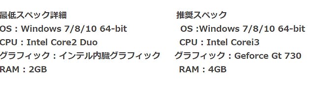 ・ソフトウェアに係る取引である場合のソフトウェアの動作環境:(最低スペック ) / (必要スペック)OS Windows 7/8/10 64-bit / Windows 7/8/10 64-bitCPU Intel Core 2 Duo / Intel Core i3グラフィック : インテル内蔵グラフィック /Geforce Gt 730RAM 2GB / 4GB
