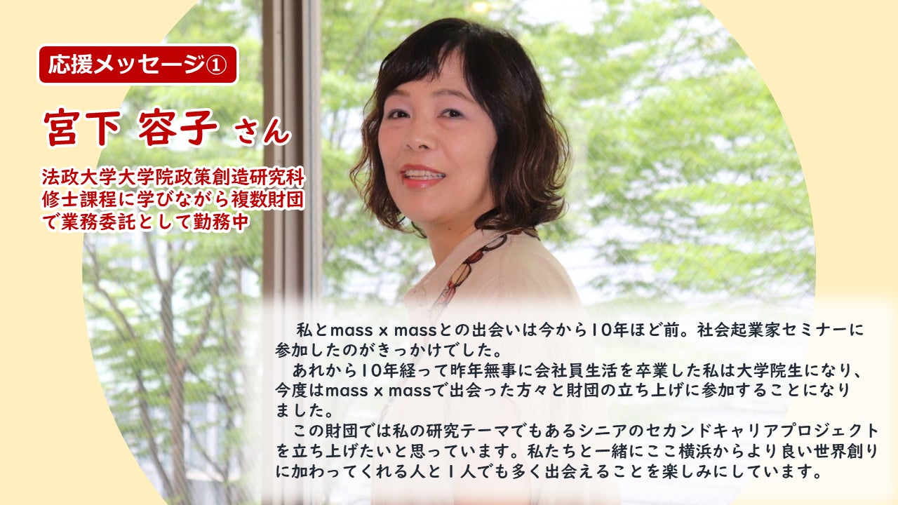 新財団設立準備チームの宮下容子さんから応援メッセージをいただきました!