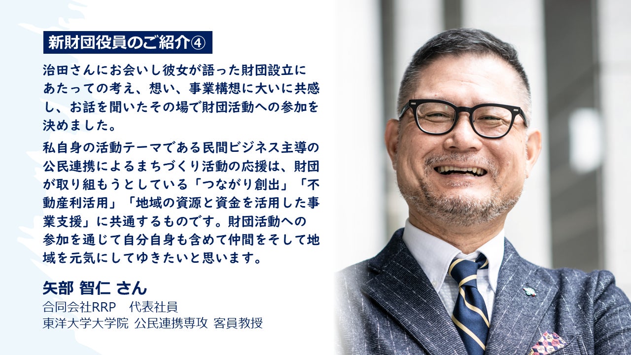 新財団で役員を務める 矢部 智仁 さん からコメントをいただきました!