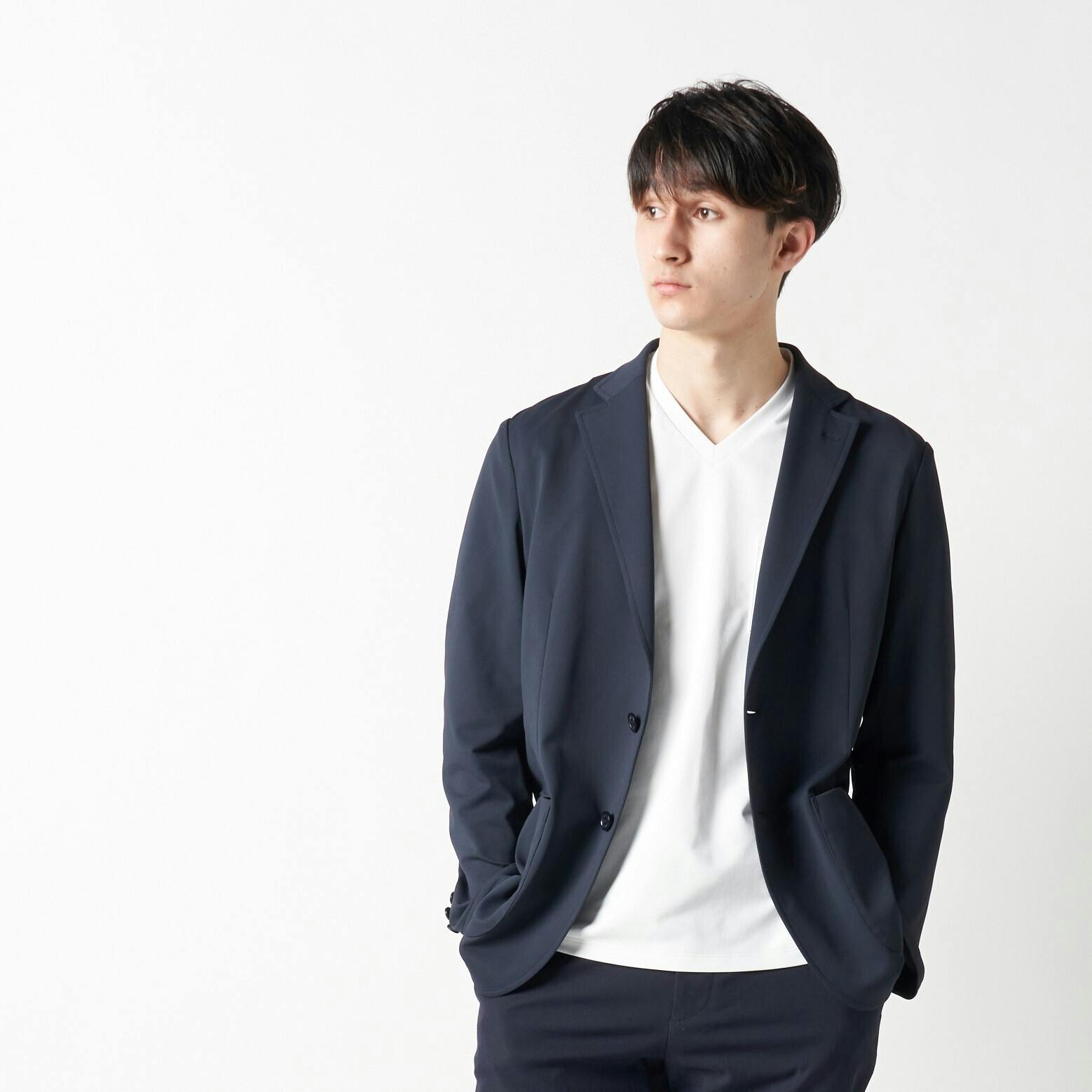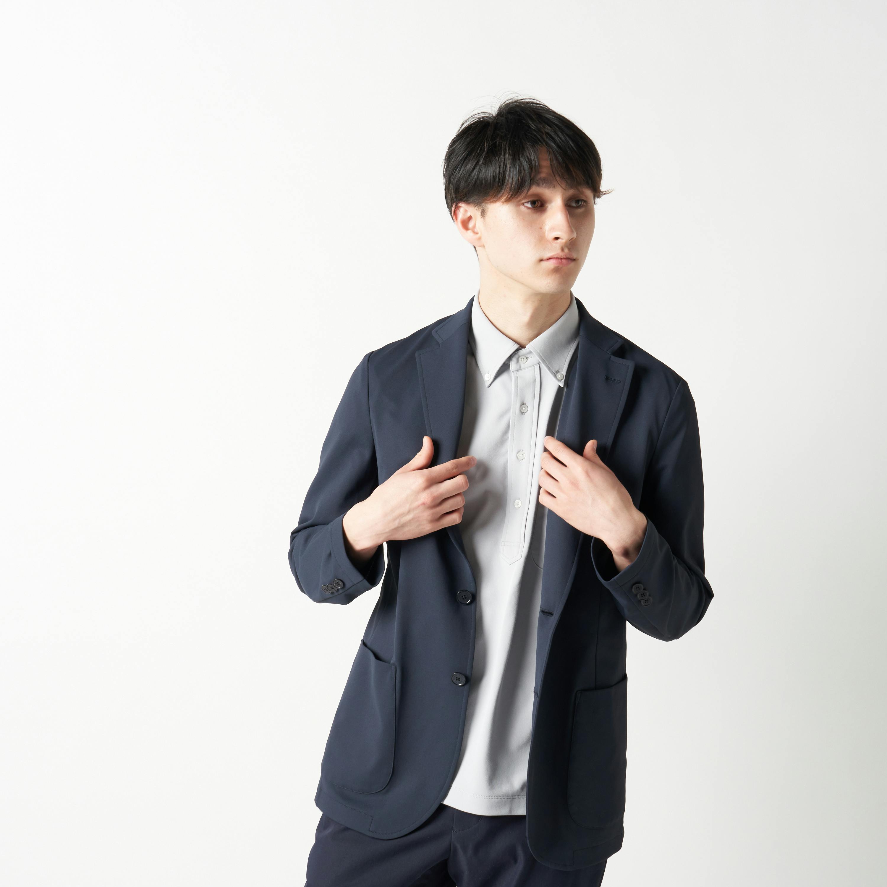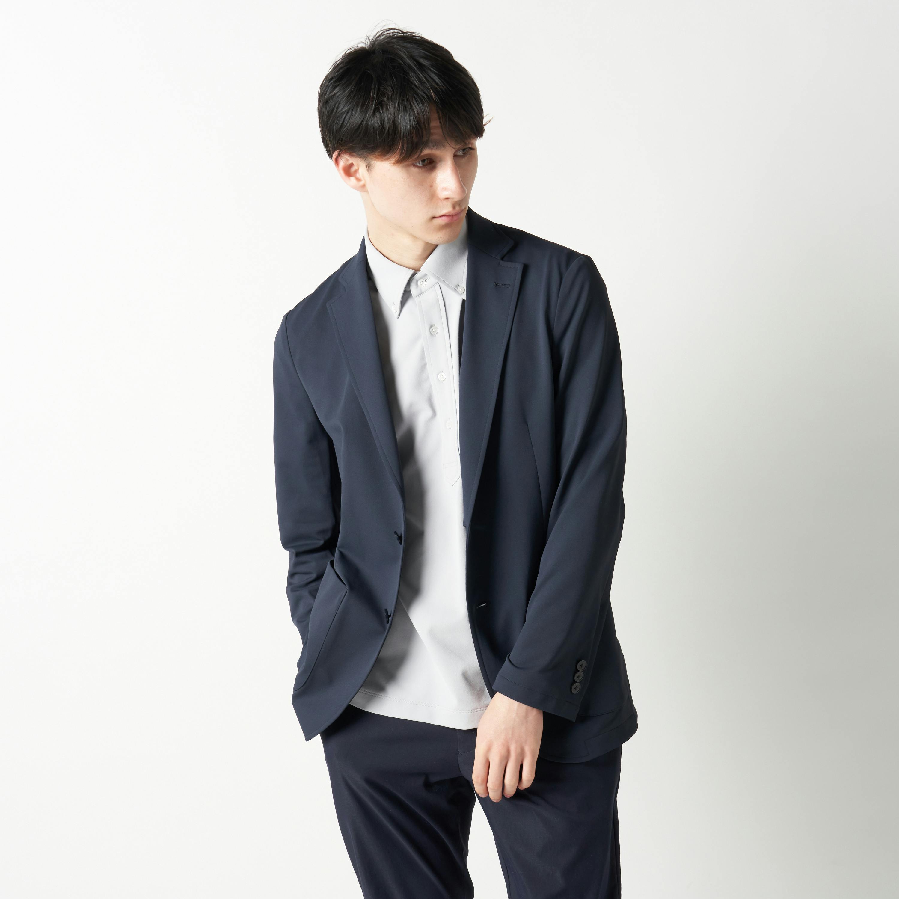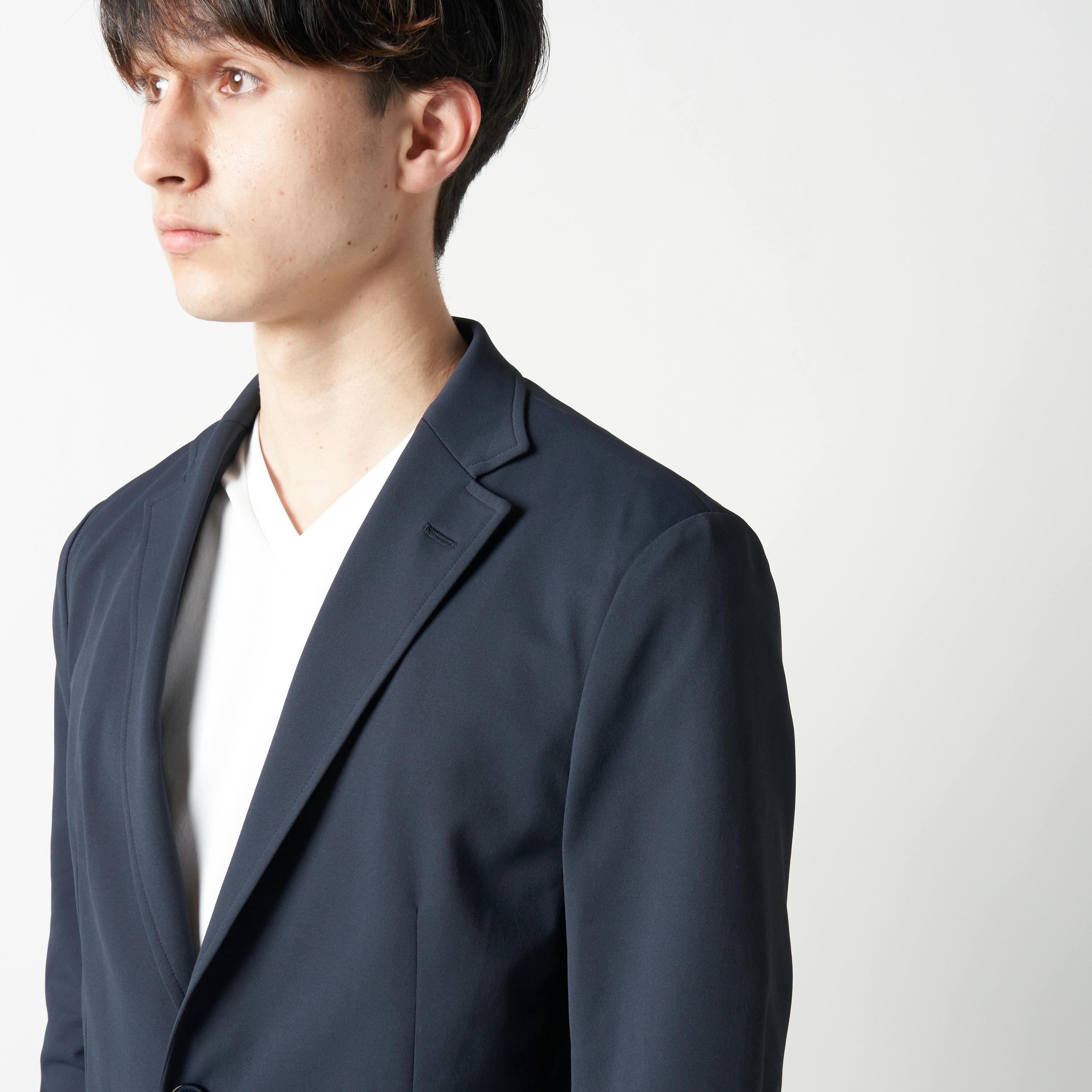 また、ジャケットは着回し力の高いネイビーを用意。基本色のインナーとも相性がよく、好印象なビジネススタイルを演出できます。