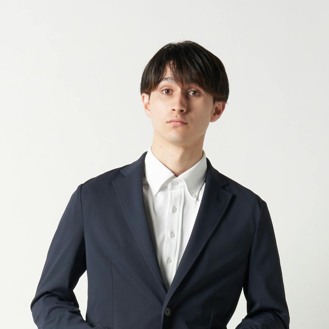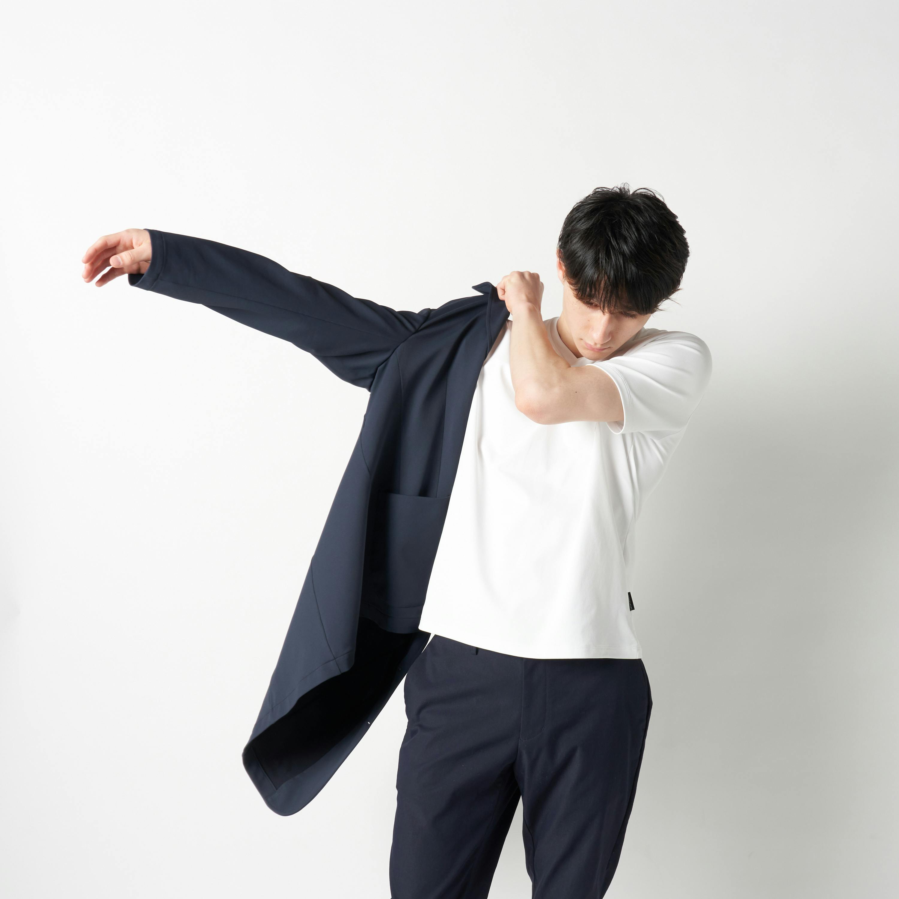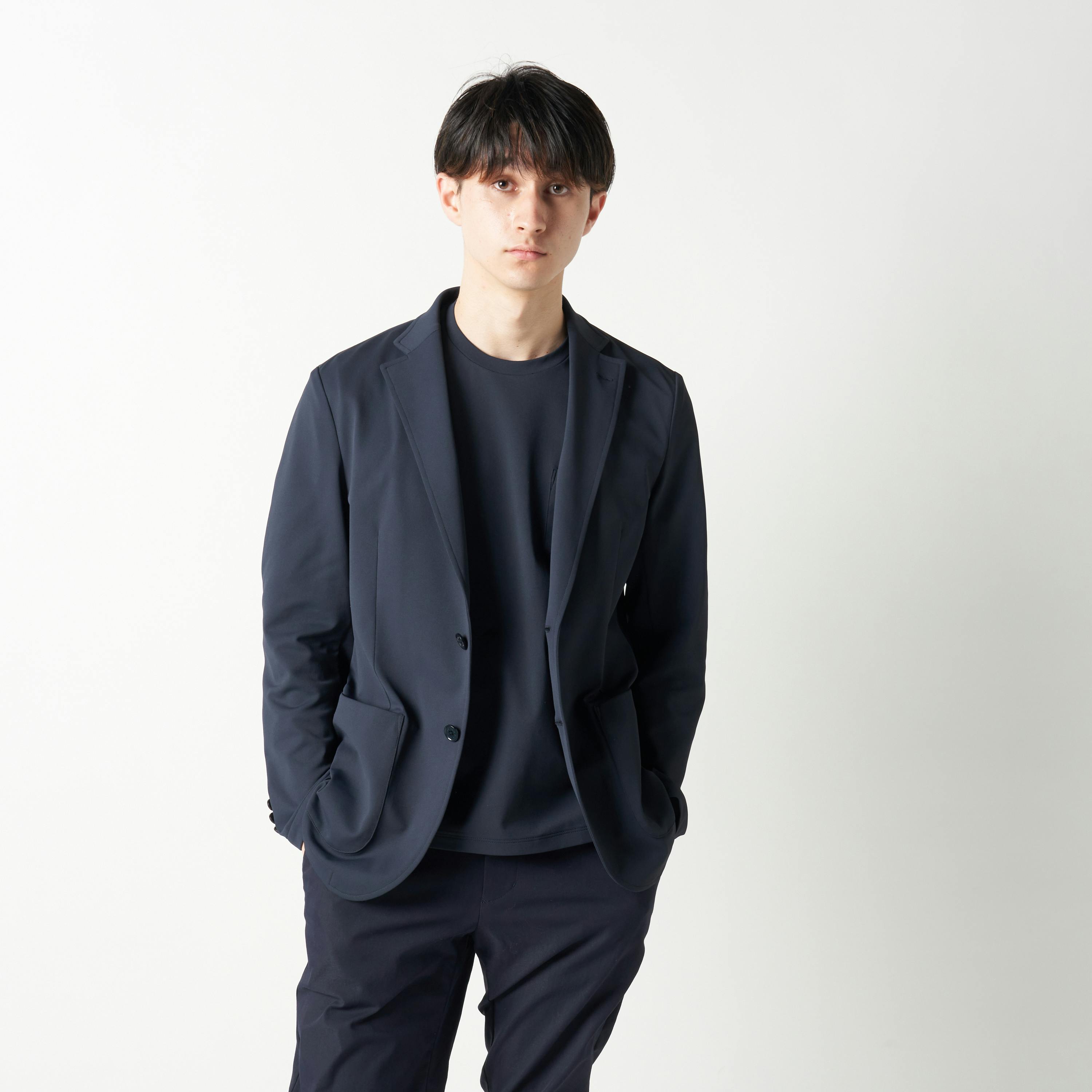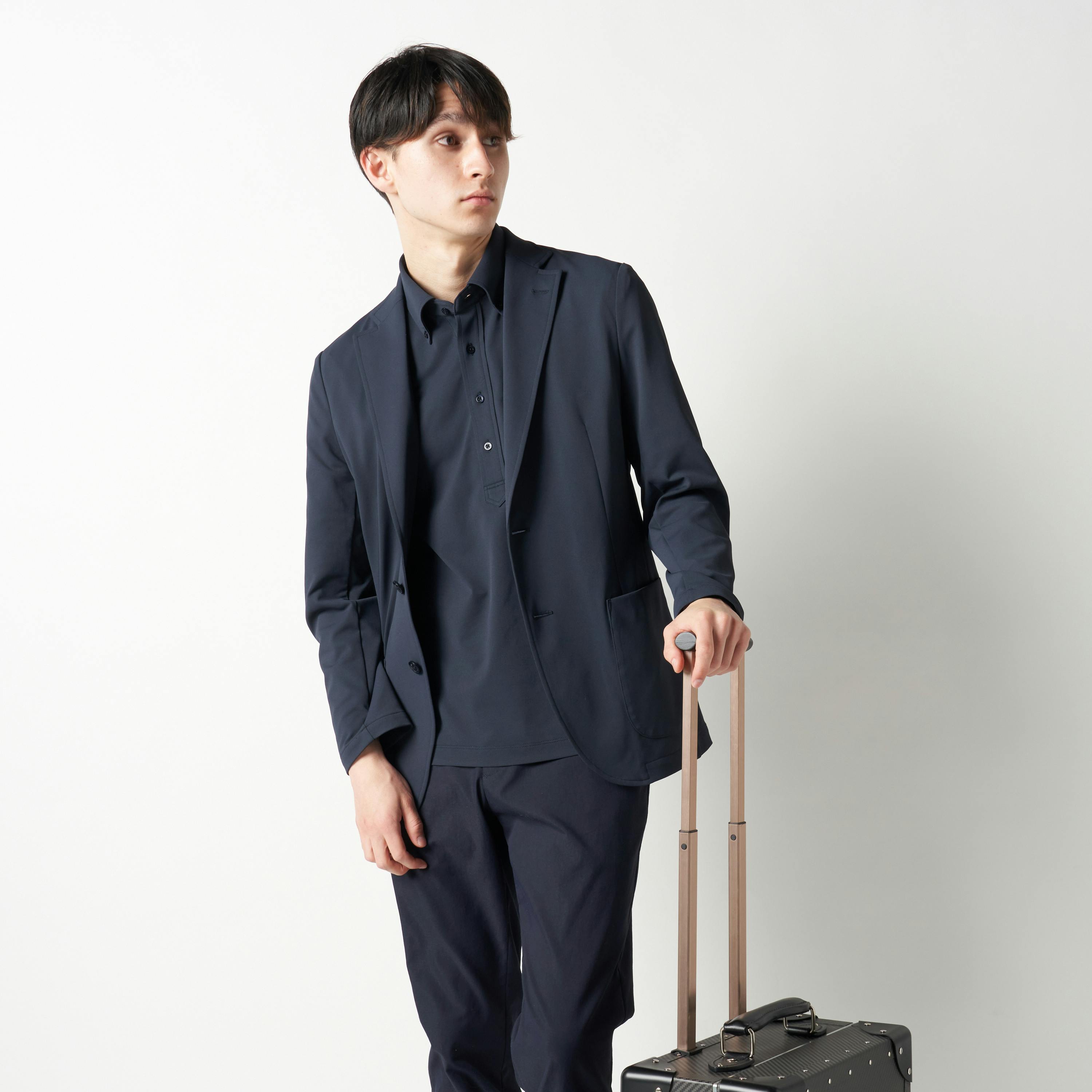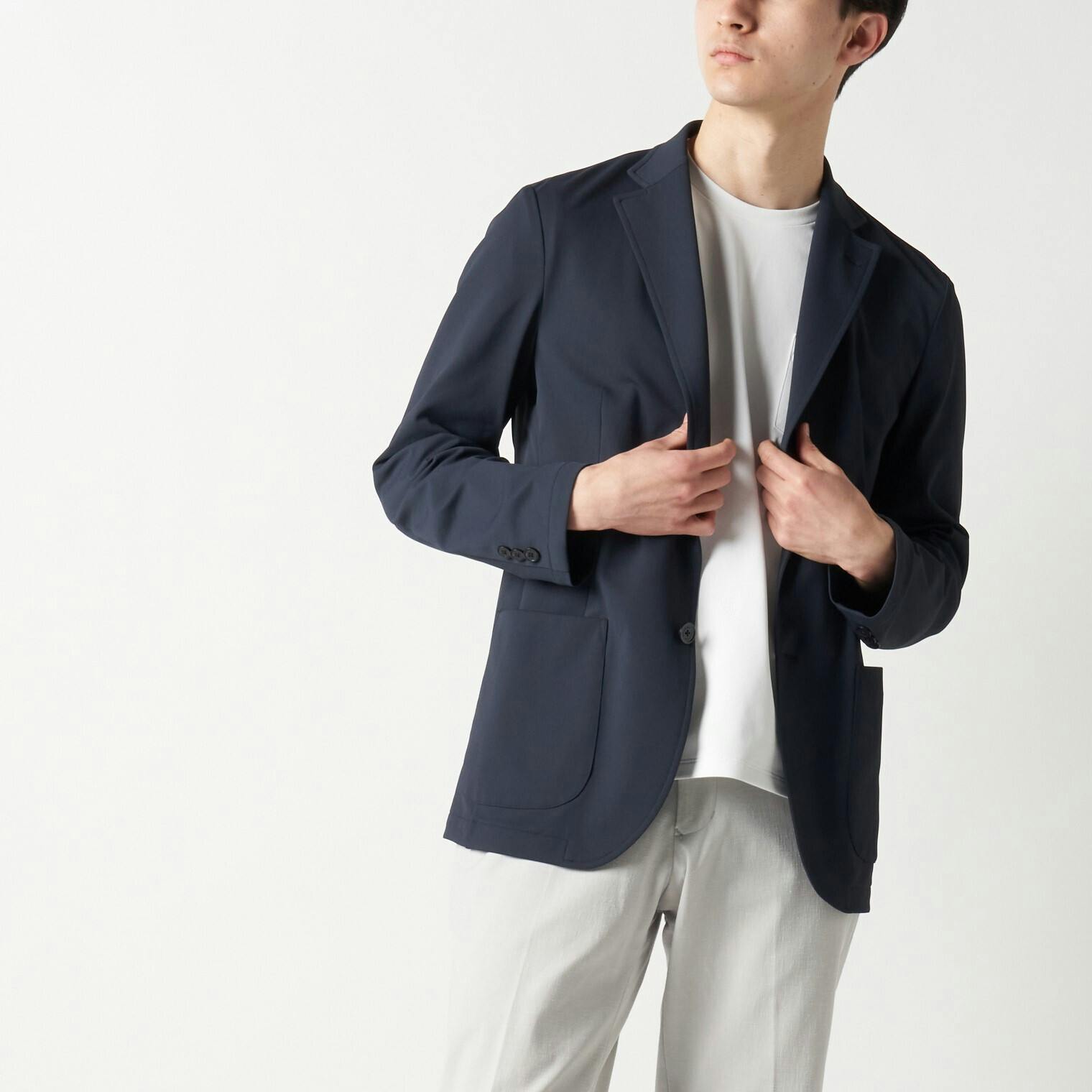 また、ジャケットは着回し力の高いネイビーを用意。基本色のインナーとも相性がよく、好印象なビジネススタイルを演出できます。