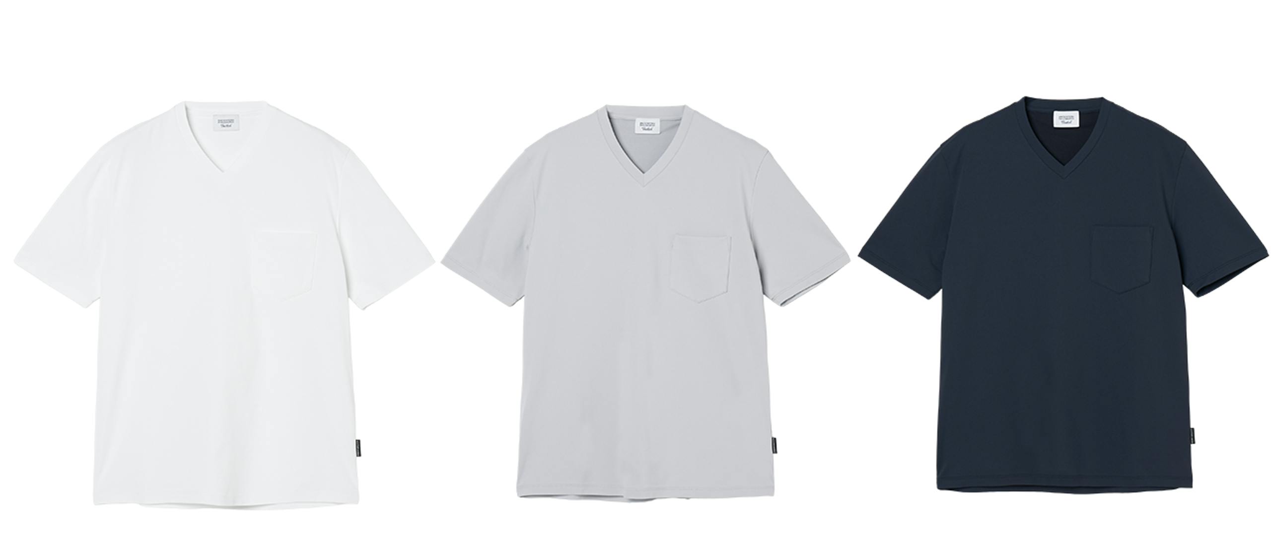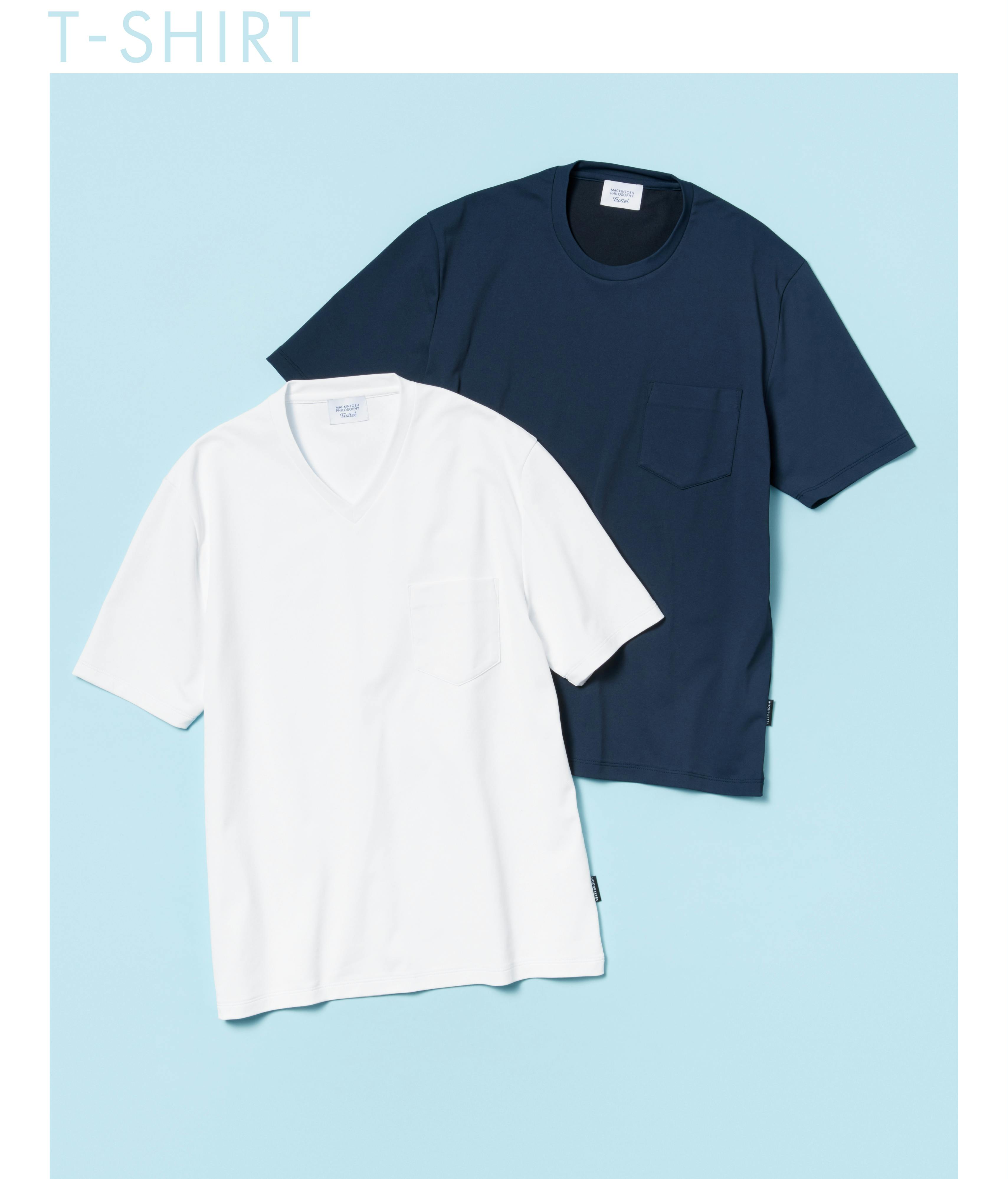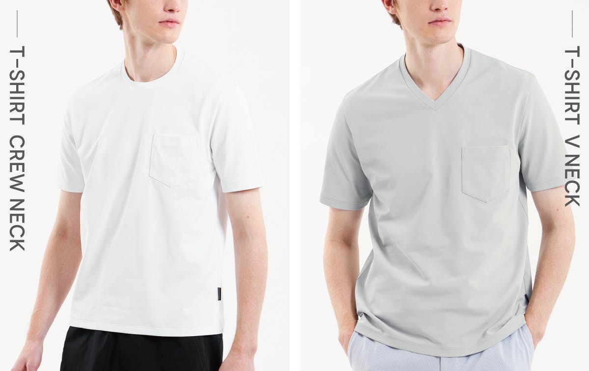 一見するとよくあるクルーネック&VネックのTシャツですが、どちらもジャケットを羽織ることを想定して作られています。