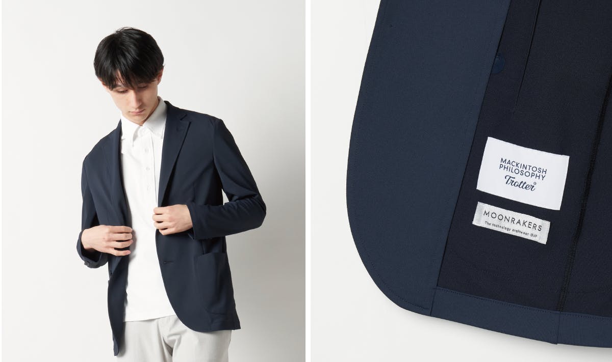 その日本が誇る最新の先端素材「MOON-TECH®」と、英国発の「マッキントッシュ フィロソフィー」のコラボレーションは、今までにない高い機能性と美しいデザインを融合した、「新時代のスペーステック クールビズ」を生み出しています。