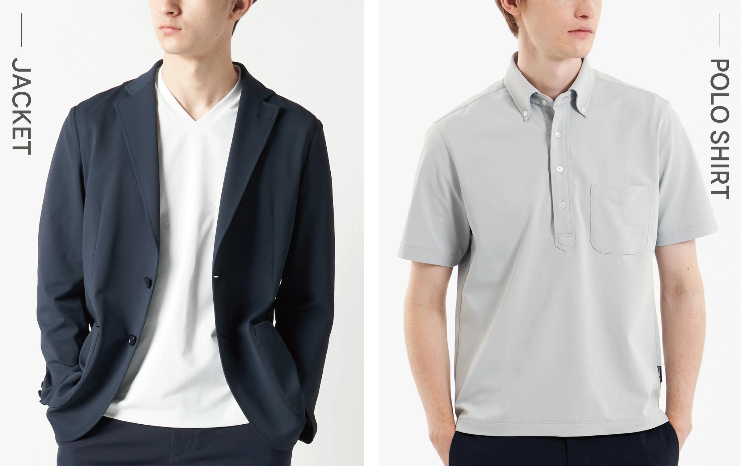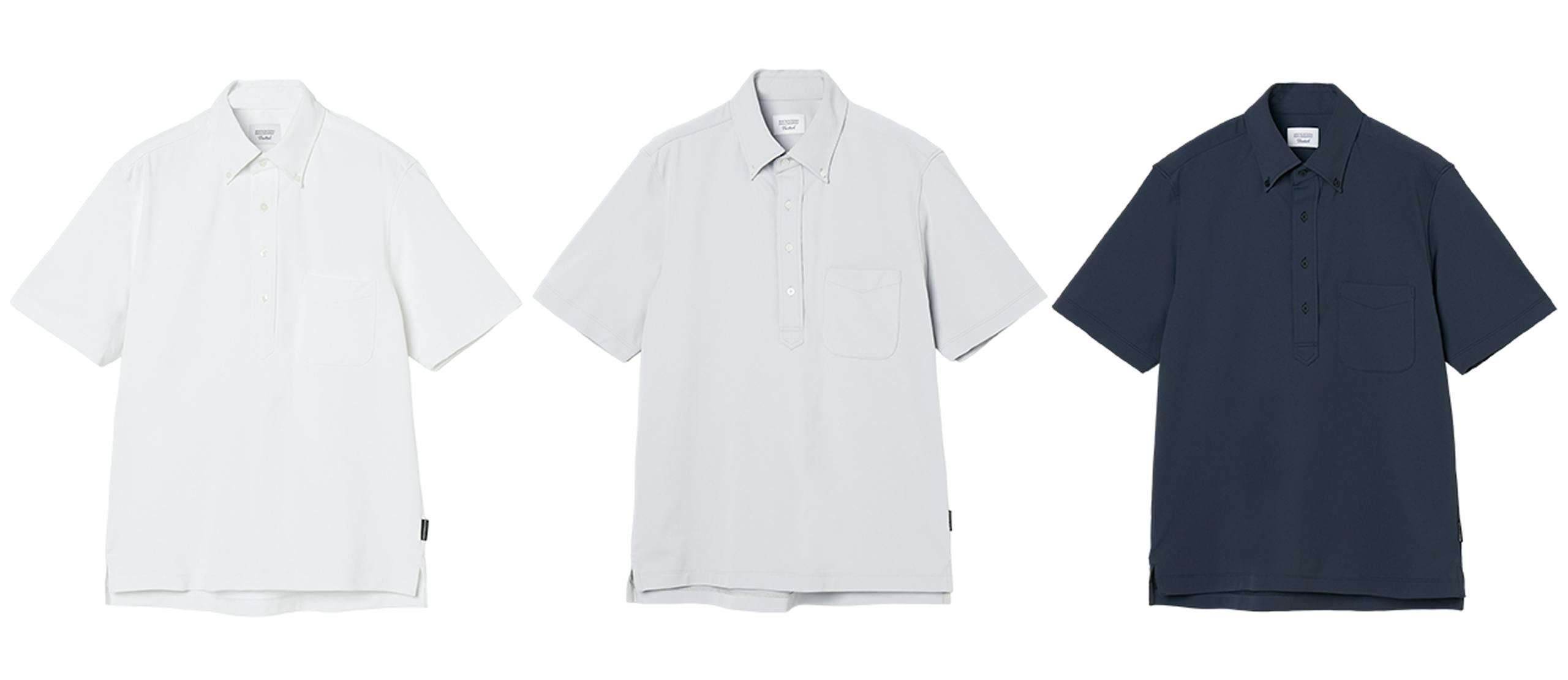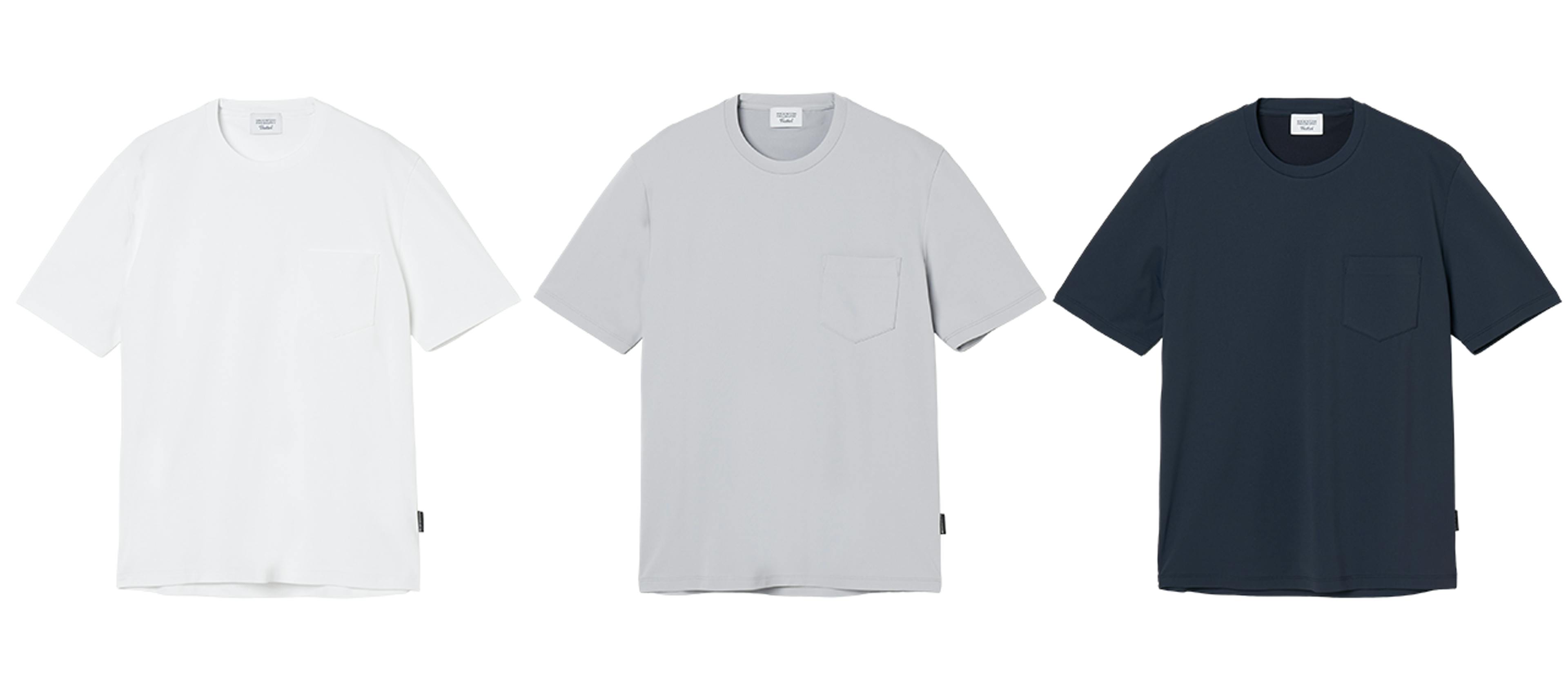 ポロシャツとTシャツは、ホワイト・グレー・ネイビーの3色をラインナップ。これはビジネススタイルにおける基本色でもあるため、手持ちのアイテムとも合わせやすく、どんなシーンにもマッチします。