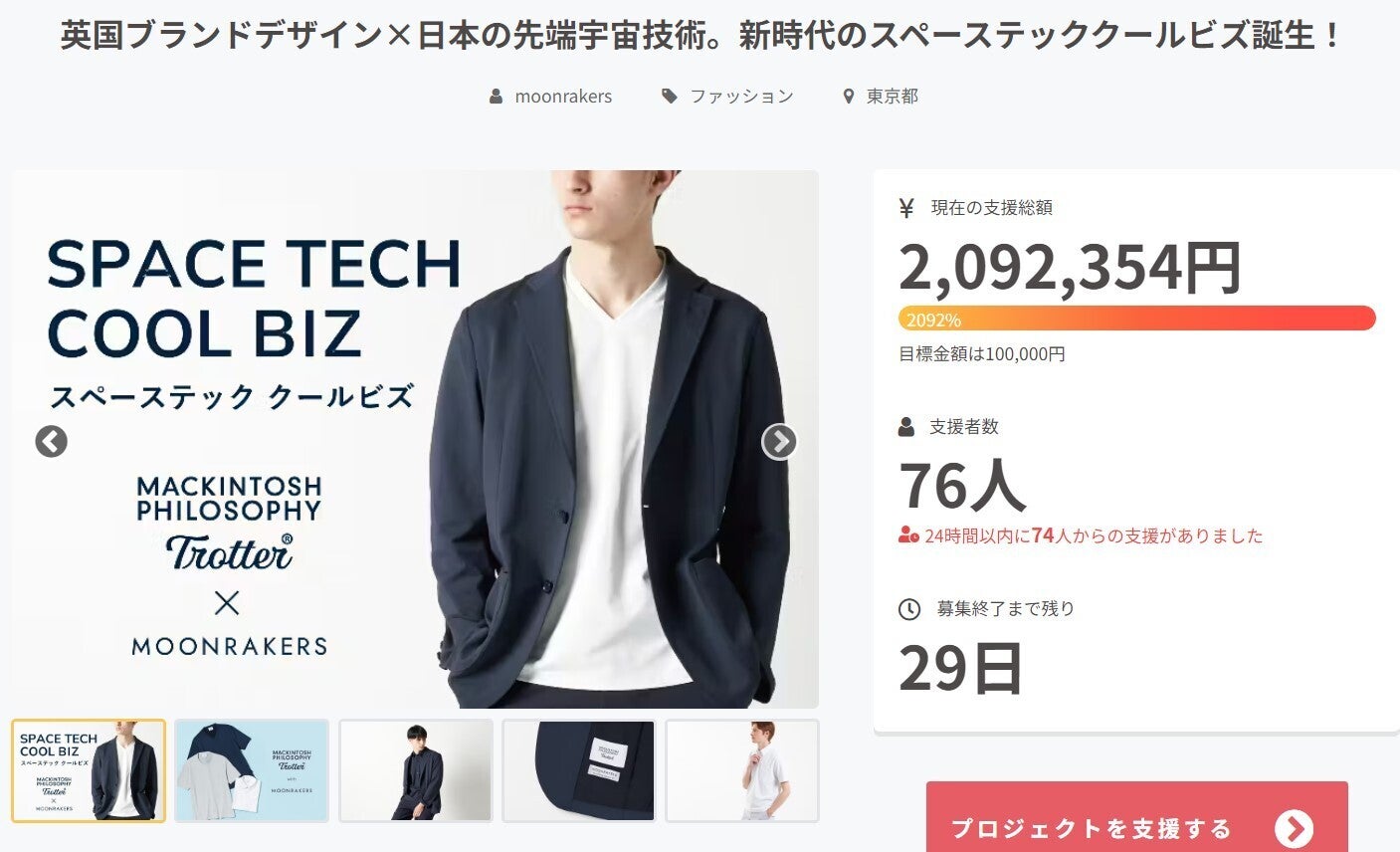 なんと、わずか1日で目標金額の2000%を超える応援をいただいています!
