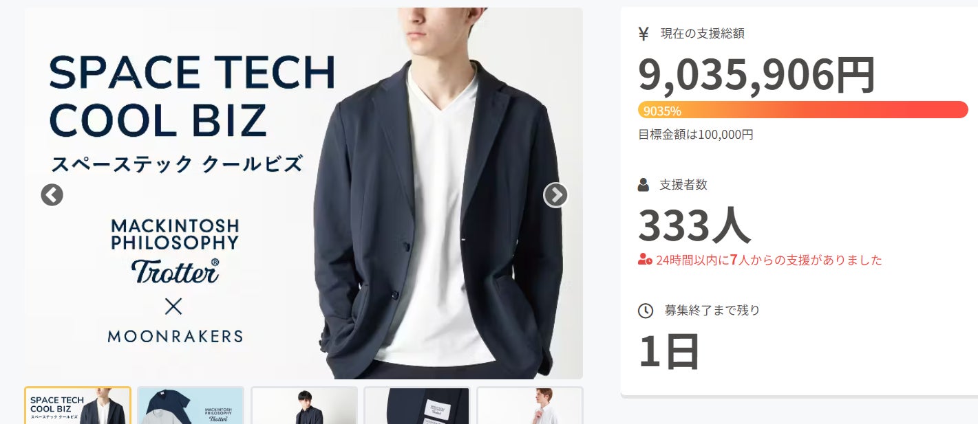 みなさまからの応援は途切れることなく続き、現時点ですでに330名を超えるみなさまより目標金額の9000%を超えるご支援をいただいています。