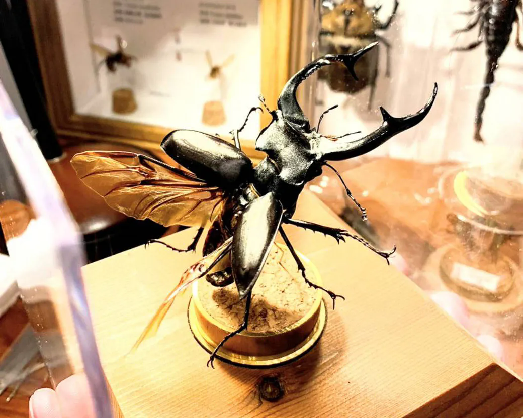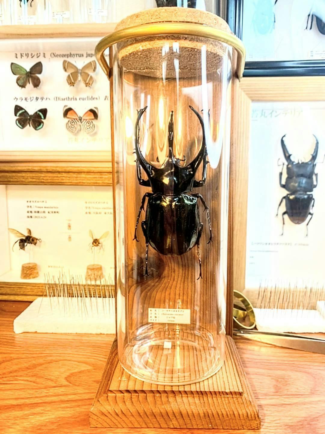 サイズも大小さまざまなものを扱っていて、「こんなに大きな昆虫もいるの?」とびっくりされる方も多いです。大型の昆虫は、やはりダイナミックさがあり魅力的です。