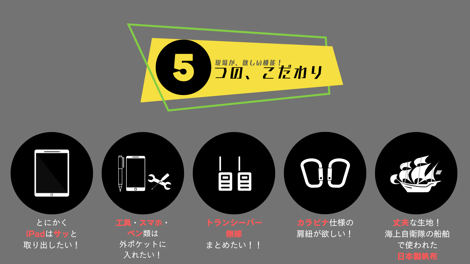 現場でお仕事をする方が使いたくなる商品、