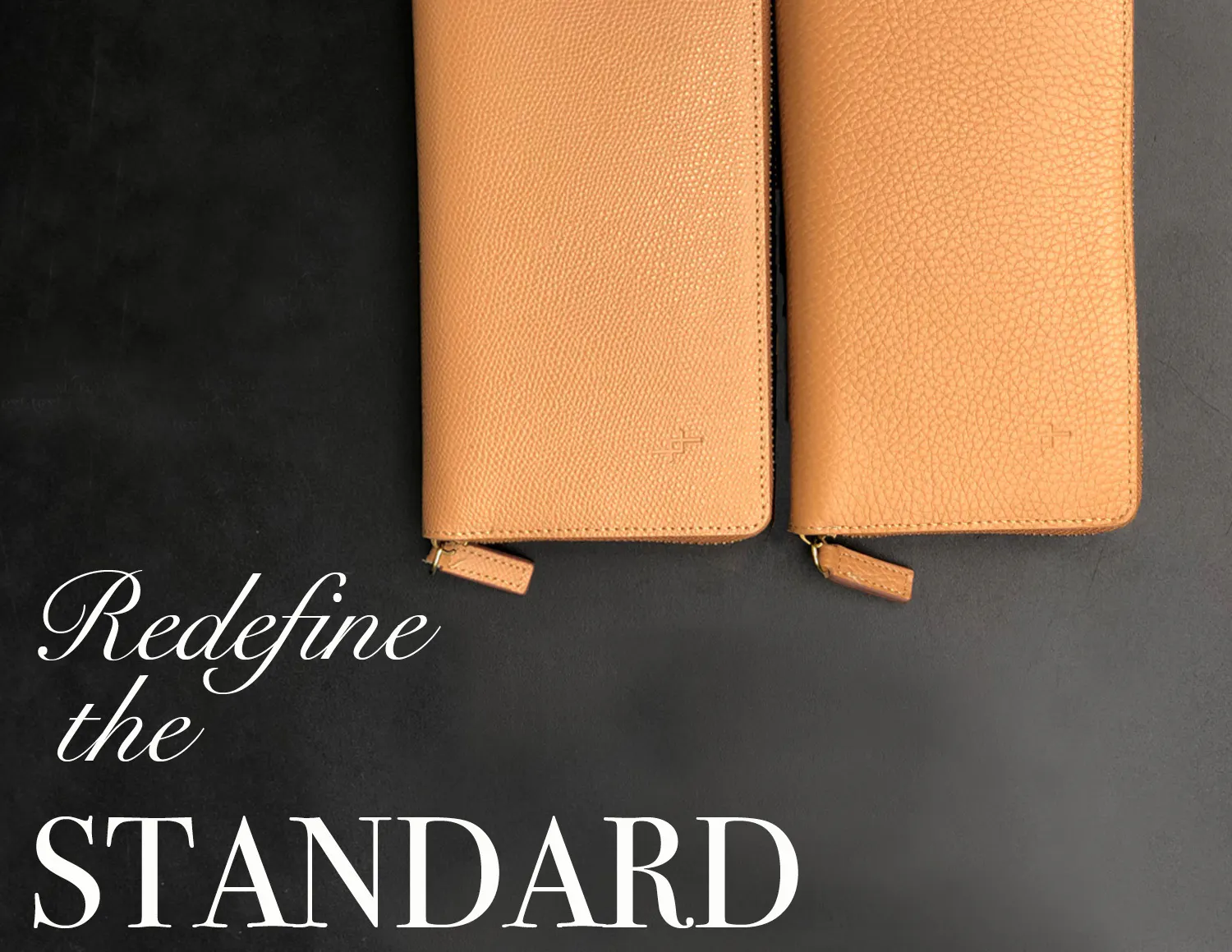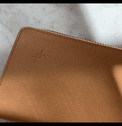 ほどよく厚みがあり耐久性の高い牛レザーをベースに、表面に型押しを施したことにより「高級感のある程よいツヤ」とともに「傷や水・汚れなどを弾きやすい」長く美しさを楽しんでいただけるレザーが出来ました。