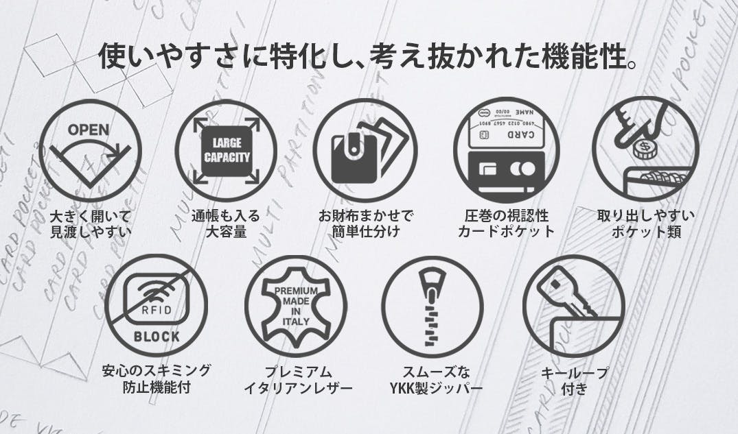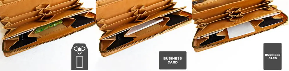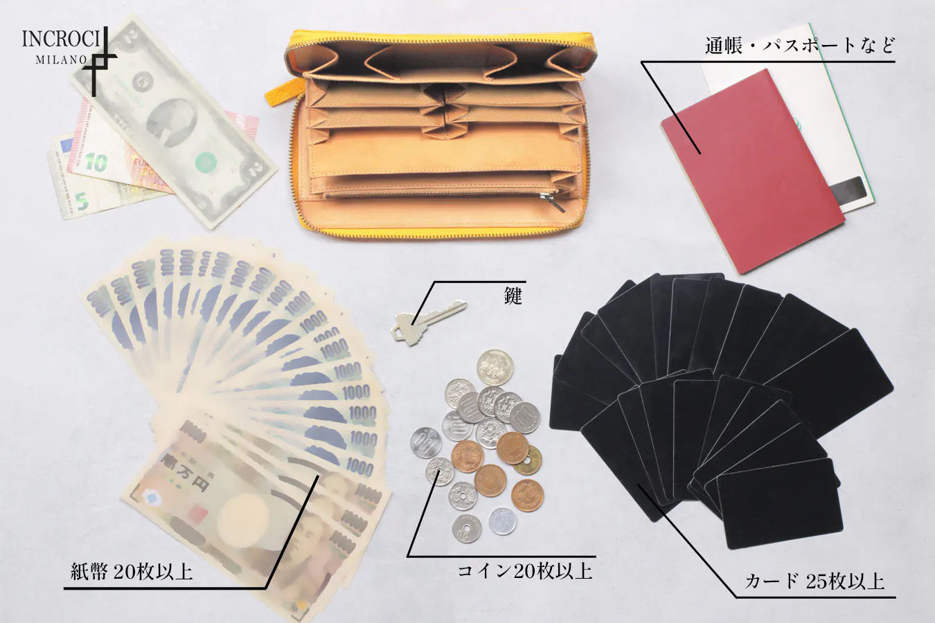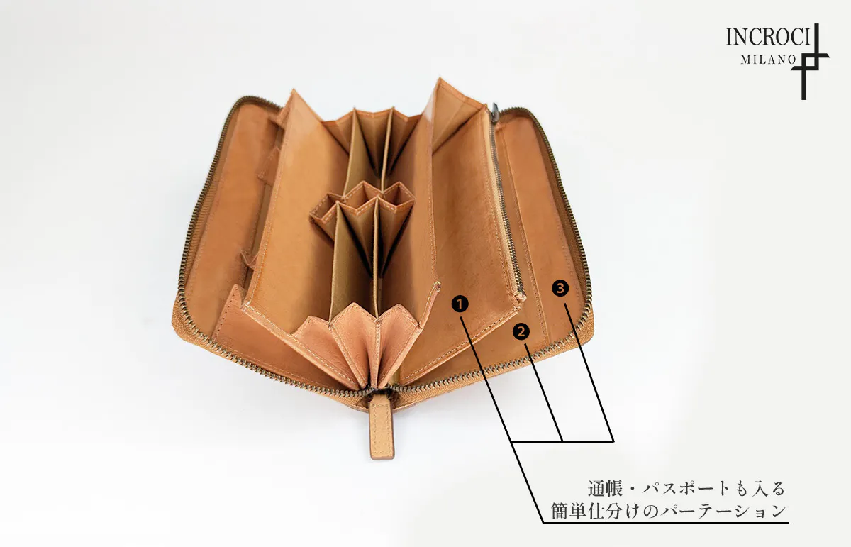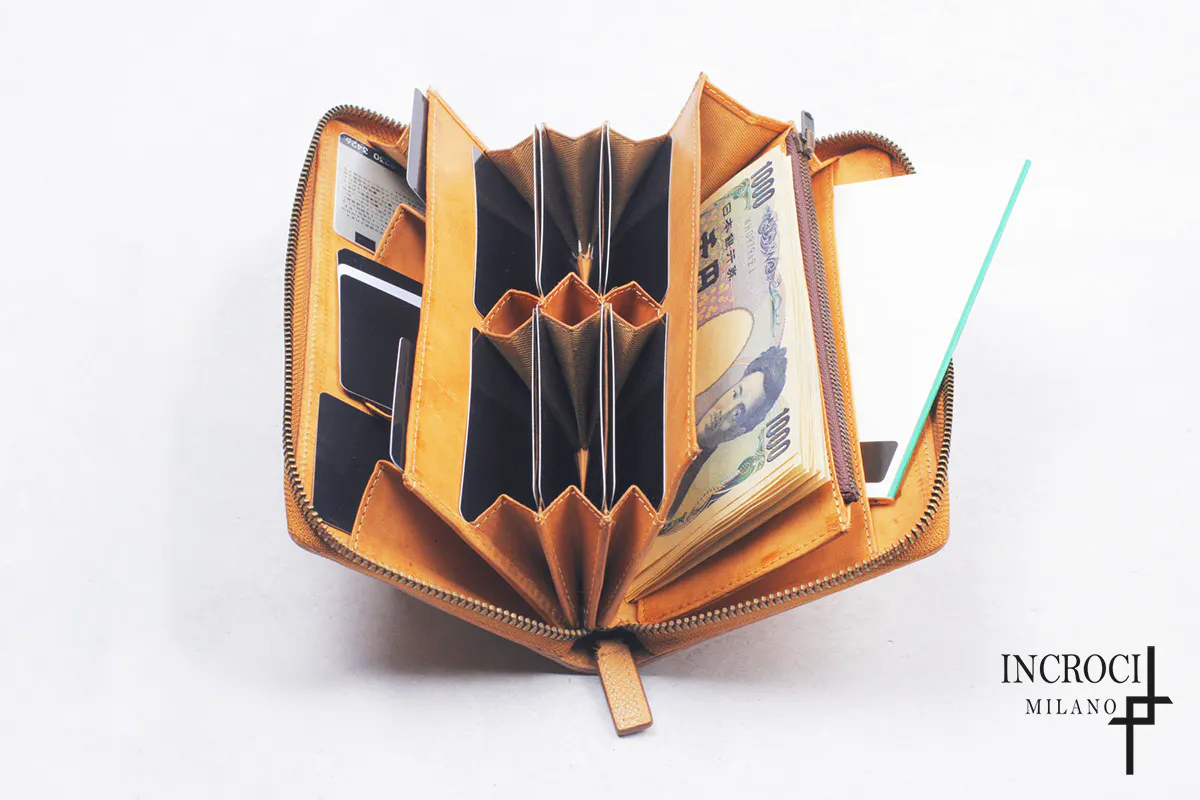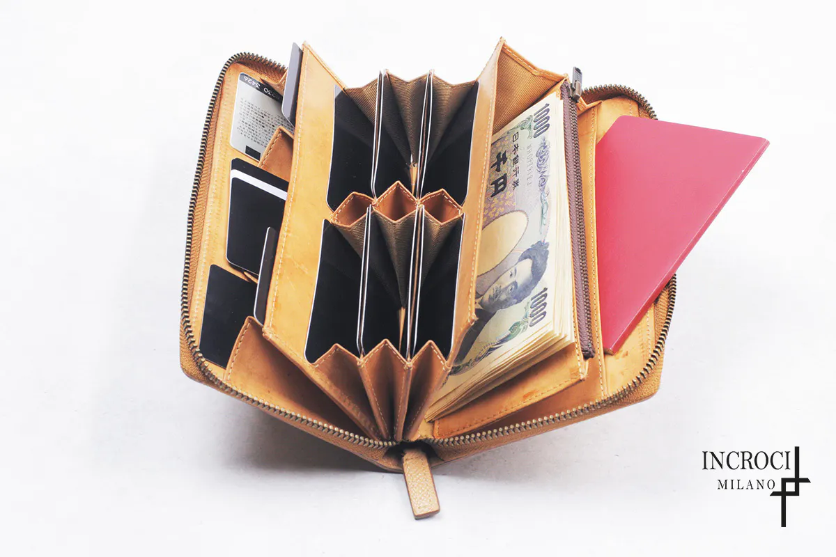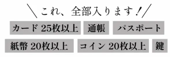 ①やっぱり全部持ち歩きたい方必見!紙幣20以上、カード25枚以上、通帳、パスポート、名刺、鍵を長財布に収納可能!