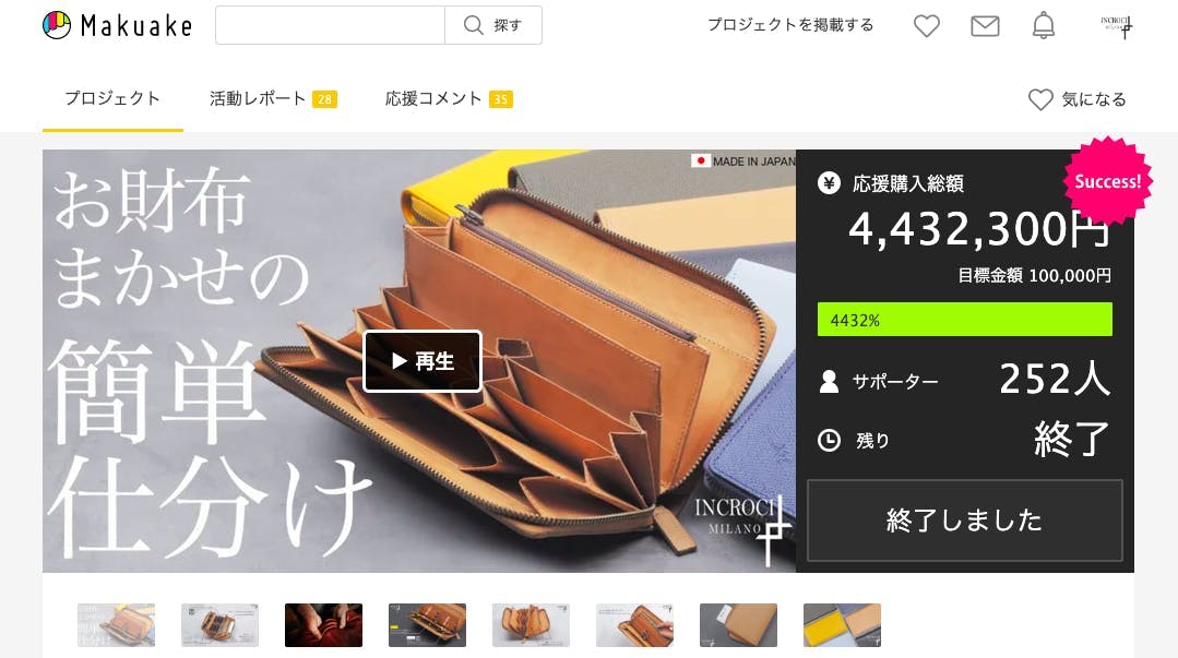 2023/10/30 17:40「通帳も入る大容量!使うだけで仕分け上手になれる長財布。ジェニオ・グランデⅡ」プロジェクトオーナーのIncroci Milanoです。この度はご支援いただきまして誠にありがとうございます。ご支援されたリターンのすべての商品の発送手続きが完了いたしましたので、ご報告させていただきます。リターンがお手元に届くまで、今しばらくお待ちくださいませ。改めて、ご支援いただきまして誠にありがとうございました!INCROCI MILANOは、引き続き皆様に少しでも快適な生活をお届けできるような商品を研究・開発して参ります。新商品の情報につきましては、INCROCI MILANO Instagramhttps://instagram.com/incroci_milanoINCROCI MILANO Official LINE Accounthttps://page.line.me/439asdqgにて随時更新予定です!また、そちらから、今回お届けさせていただきましたGenio GrandeⅡのお修理のご相談なども受け付けておりますので、ぜひフォローしていただき、お役立てくださいませ!今後とも、INCROCI MILANOへのご支援を、どうぞよろしくお願いいたします。INCROCI MILANOhttps://incrocimilano.com もっと見るプロジェクト進捗状況のご報告