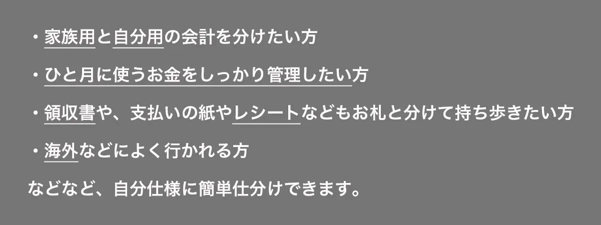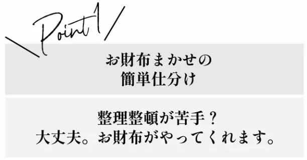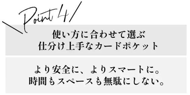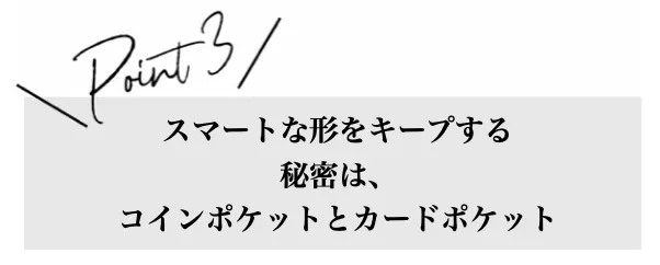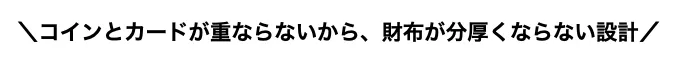 ②コインポケットとカードポケットが重ならない設計だから、沢山入れても、財布はスリムな形をキープ!