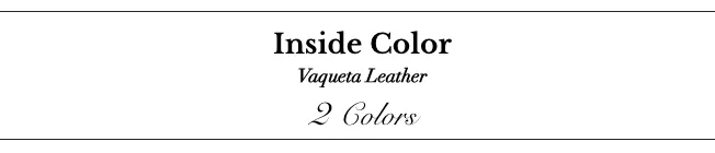 BLACKの内側はBLACKのヴァケッタレザー、その他のカラーには、カラーリングを引き立たせるNATURALなヴァケッタレザーの組み合わせとなります。