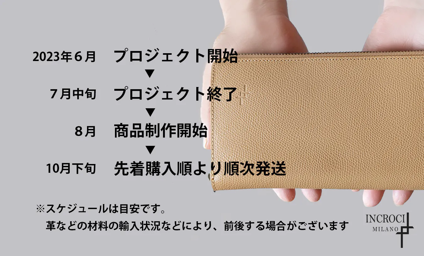 ・輸入革の納期の遅延、製造工程上の都合等により出荷時期が遅れる場合があります。生産状況につきましては、活動レポートにて随時お知らせいたします。