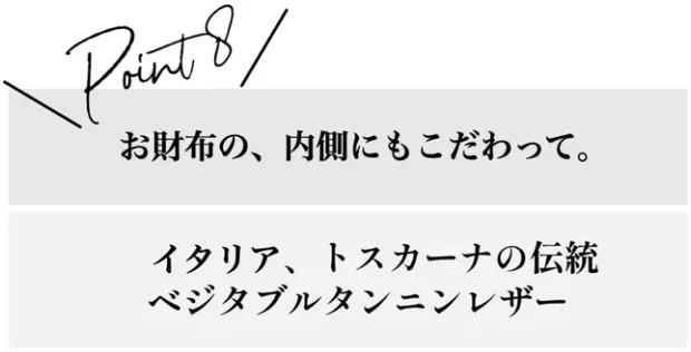 その中でも天然植物から抽出した【ベジタブルタンニン(渋)】を使用し、じっくりと時間と手間をかけてなめされたベジタブルタンニンレザーは、化学薬品を使ったなめし方とは異なり、環境にも優しい製法がとられています。