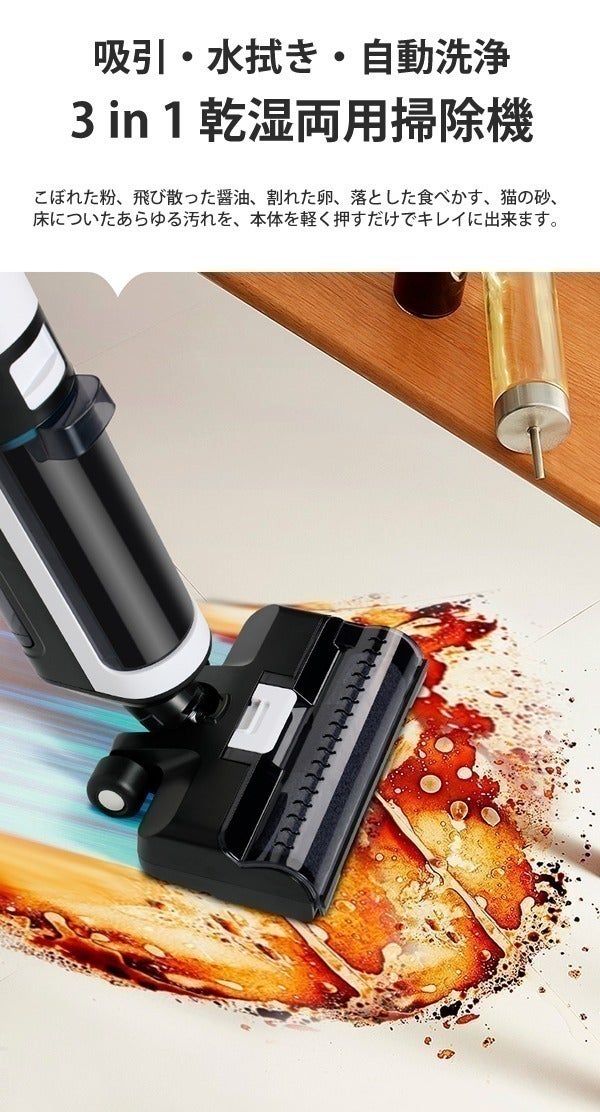便利な水ぶき、吸引、自動洗浄が出来る楽する自動モップ一度お試しください。