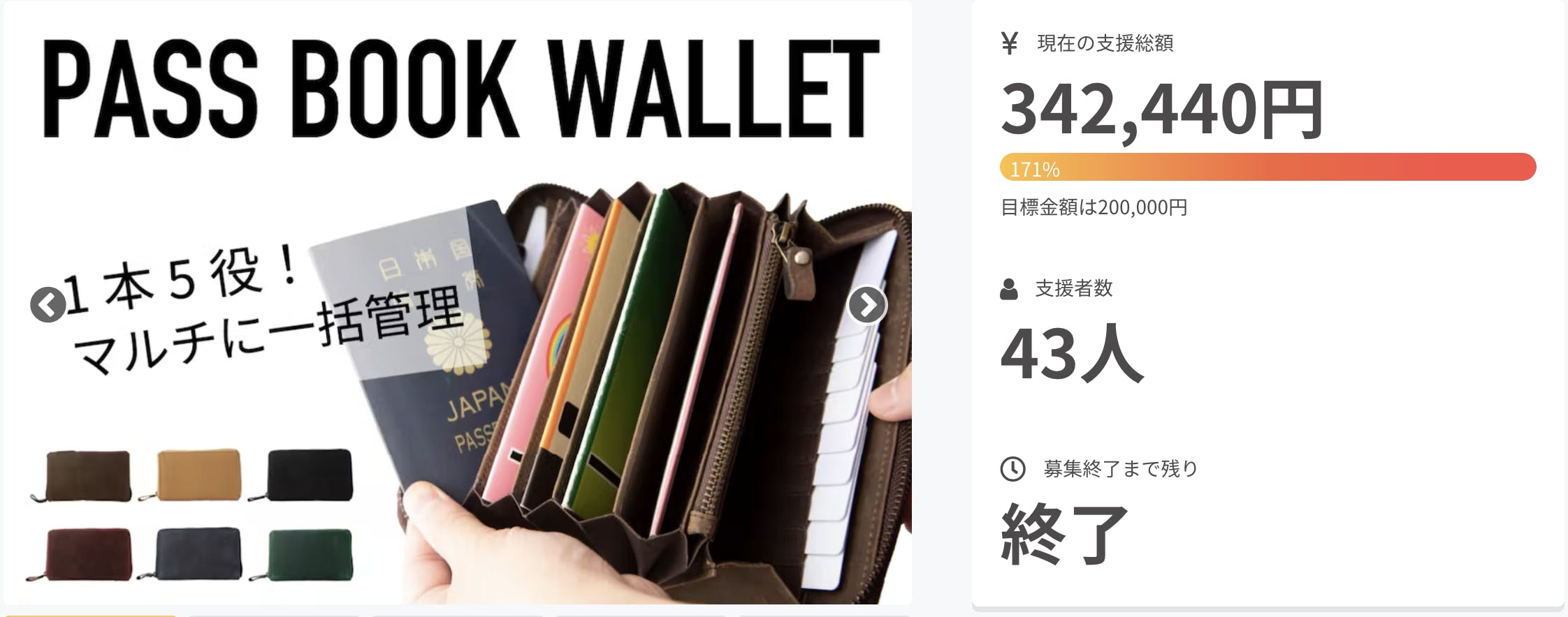 2023/04/03 09:14目的に合わせた一括管理を実現、セキュリティ機能付きPASSBOOK Walletたくさんのご支援をいただき、無事にプロジェクトを終える事が出来ました。日々新しいプロダクトが発表される中、当プロジェクトへ期待を持ってご支援いただいたものと、スタッフ一同感謝の気持ちで一杯です。誠にありがとうございます。【配送について】「PASSBOOK Wallet」は5月末までの発送を予定しています。ご登録の住所に変更がございましたら、4/7までにお手数ですが「実行者へ問い合わせ」よりご連絡ください。Hallelujah inc. もっと見る