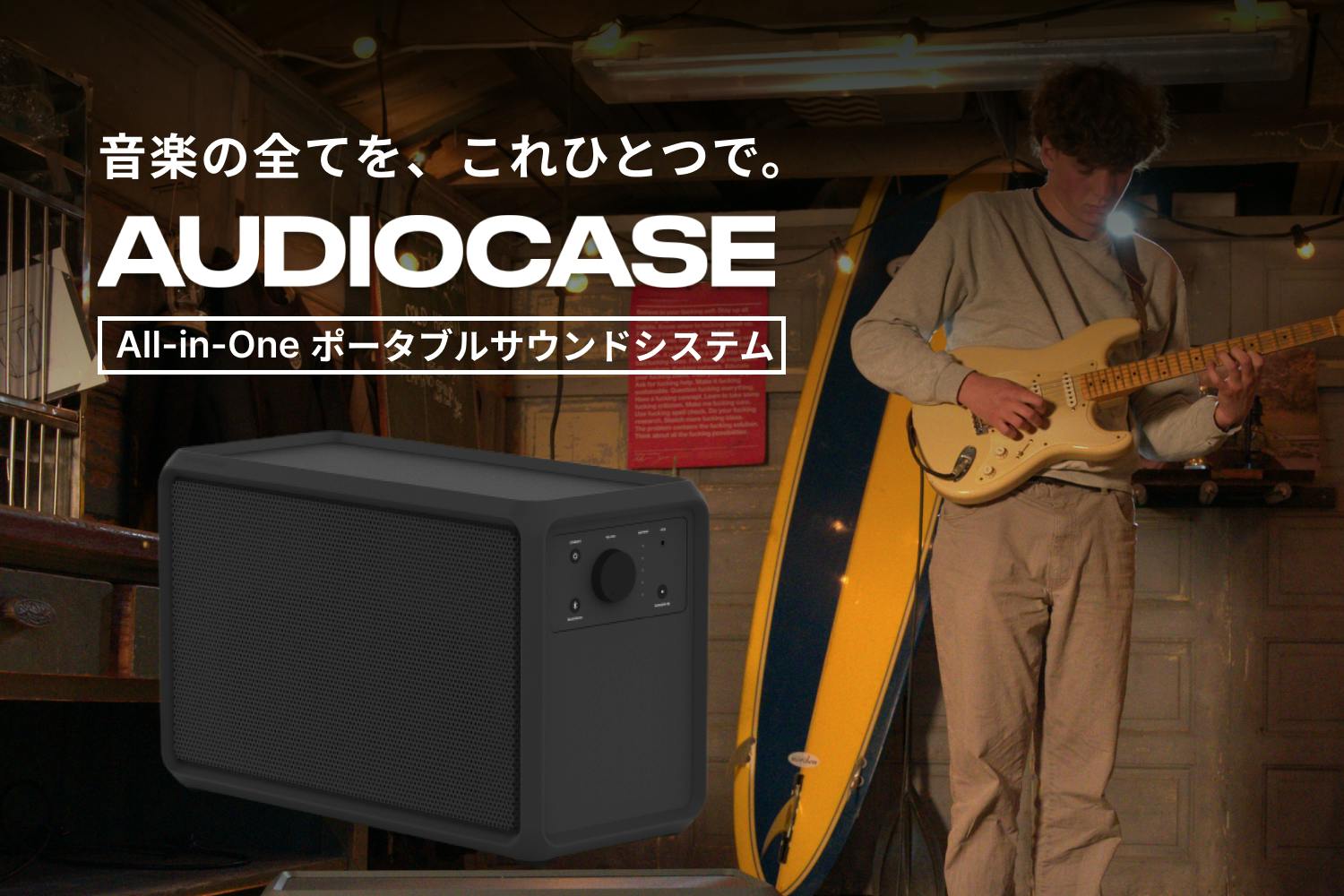 Bluetoothスピーカー、PAシステム、ホームオーディオステレオ、練習用アンプ、カラオケマシンが一台に凝縮されたAUDIOCASEは、