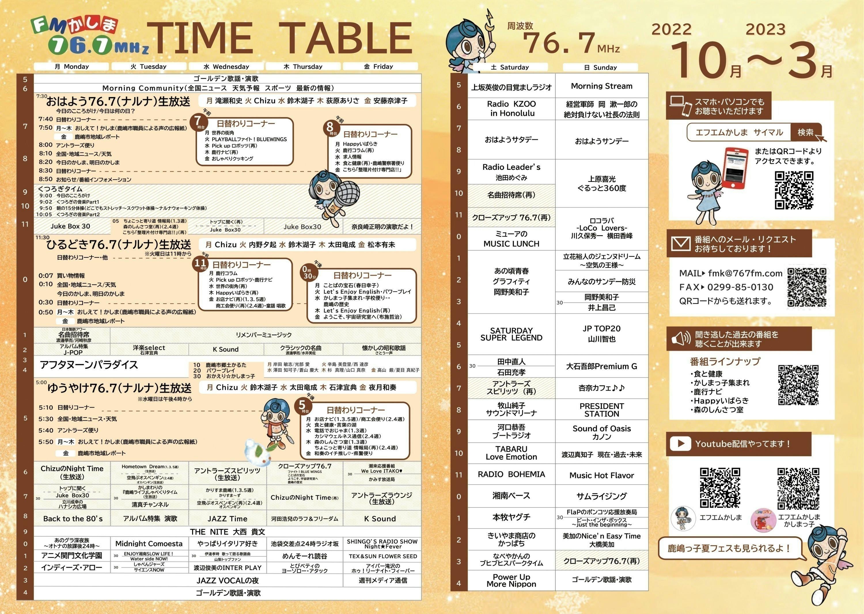 そこで、番組の趣旨(1989年以前に流れていた・聞いていた歌などをベースに色々な話を)の賛同していただいた方たちと、今まで以上に内容ん充実とパーアップ、また、新鮮な形の番組を作り、送り出したいと思います。