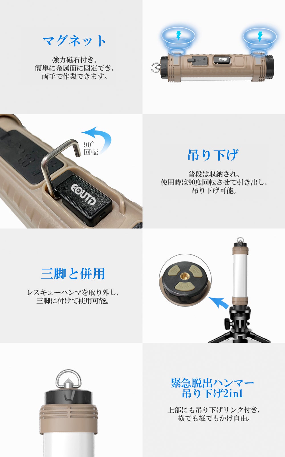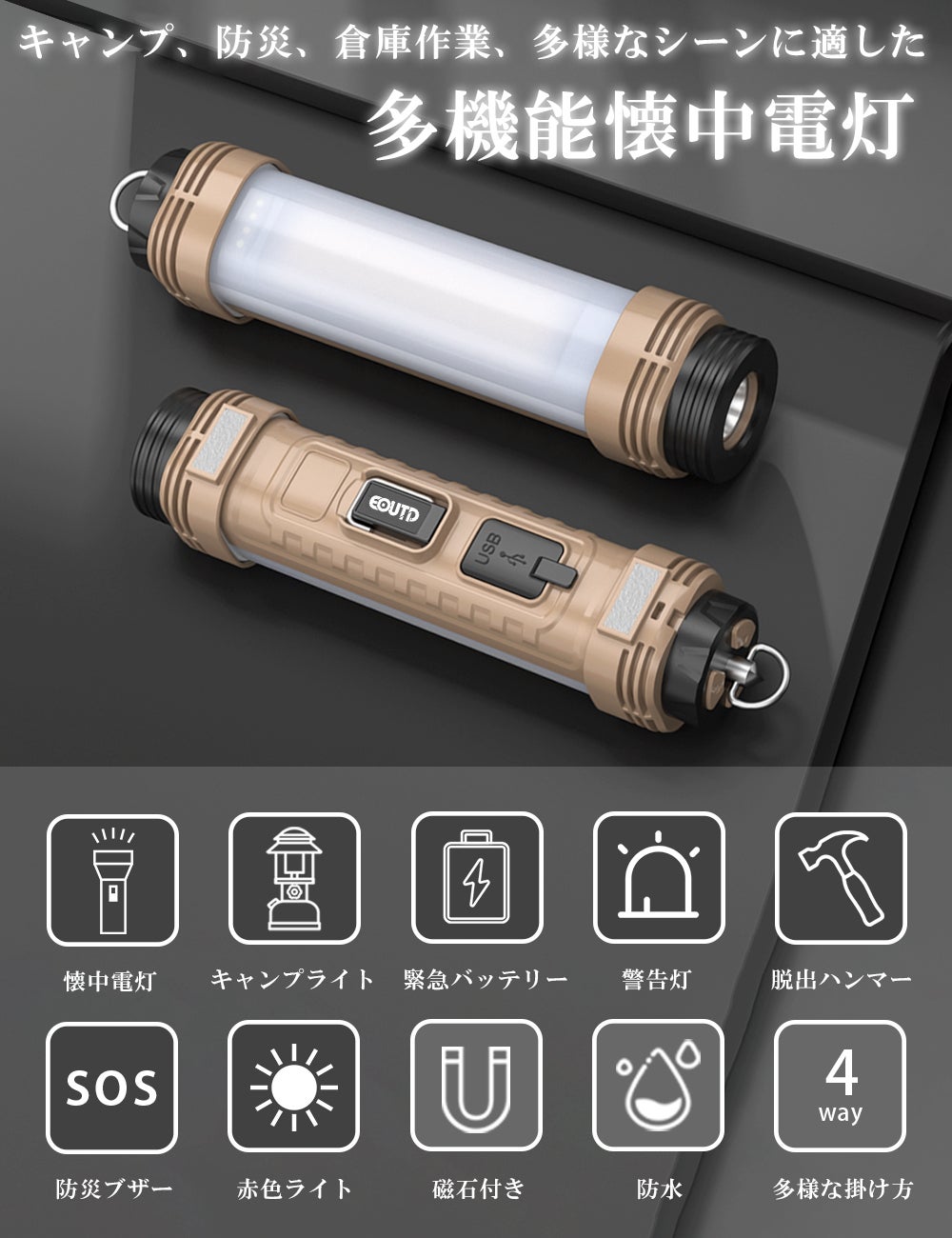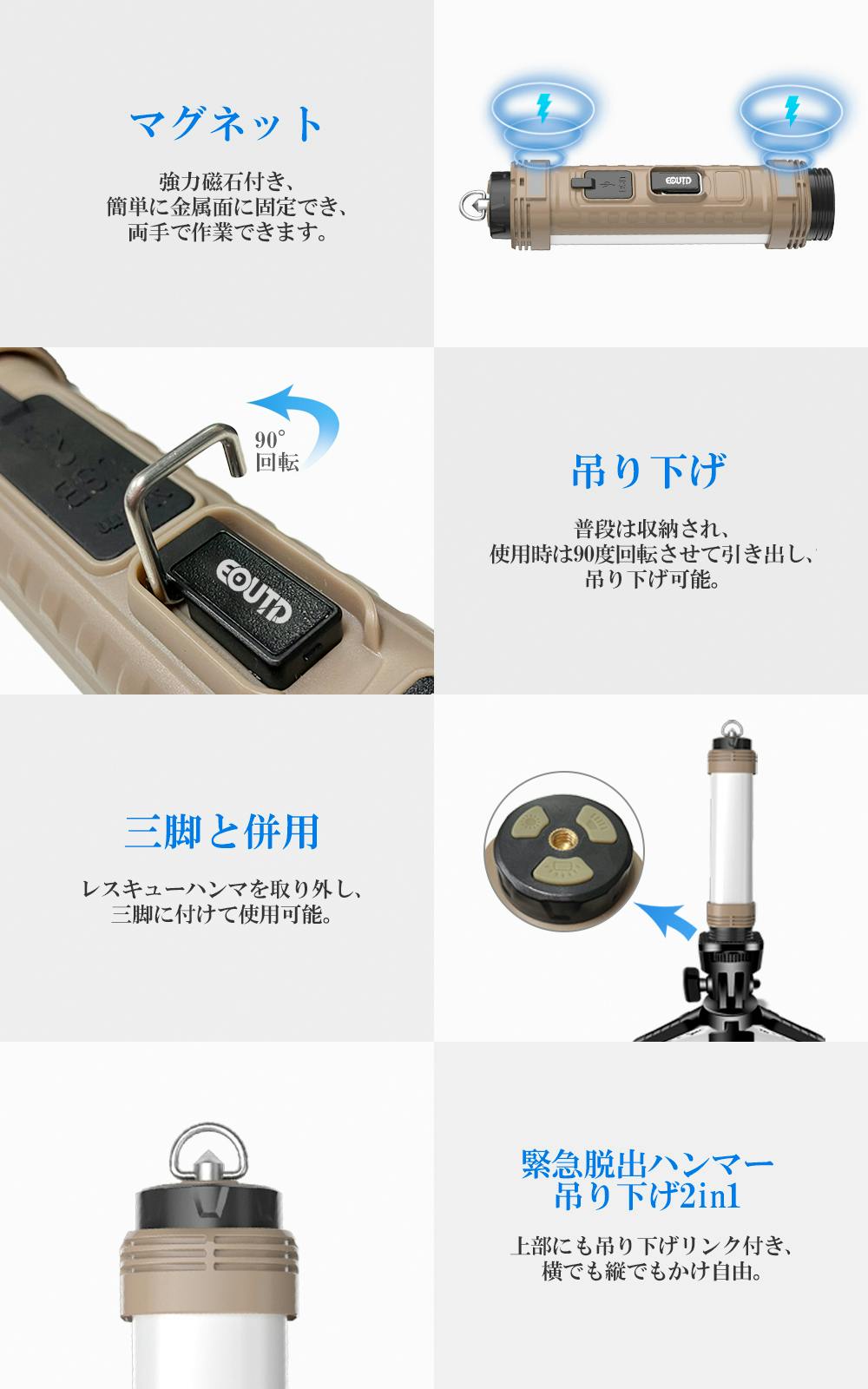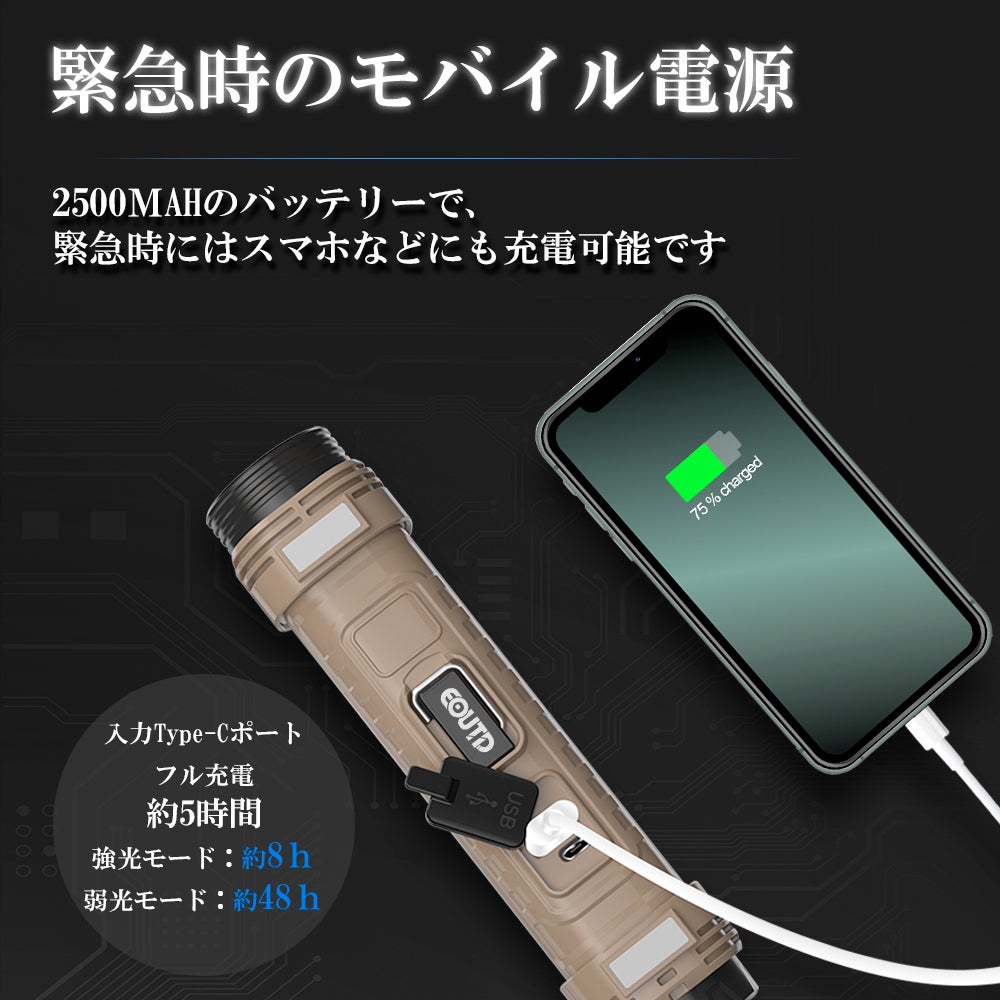 照明、安全サポート、緊急充電など、E-OUTD多機能懐中電灯は多機能を1つにまとめた商品です。