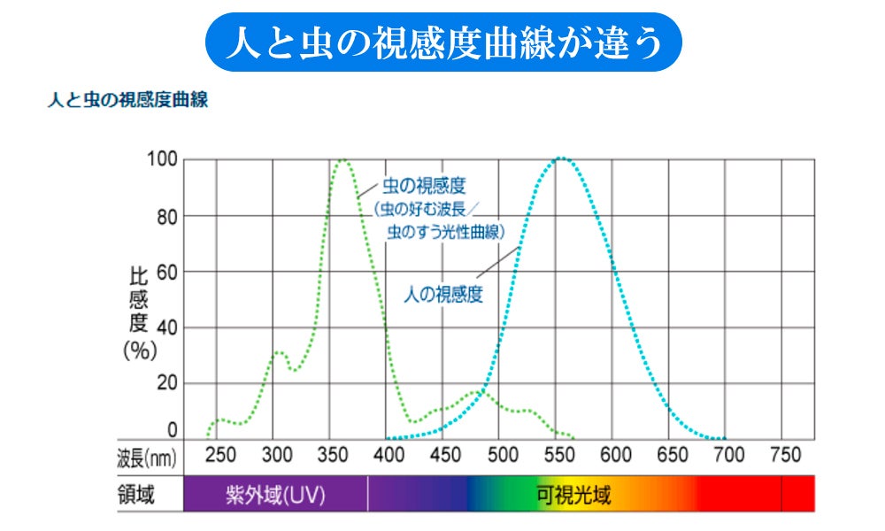 人と虫の視感度曲線が違うため、赤色光は蚊が感知できない光です。
