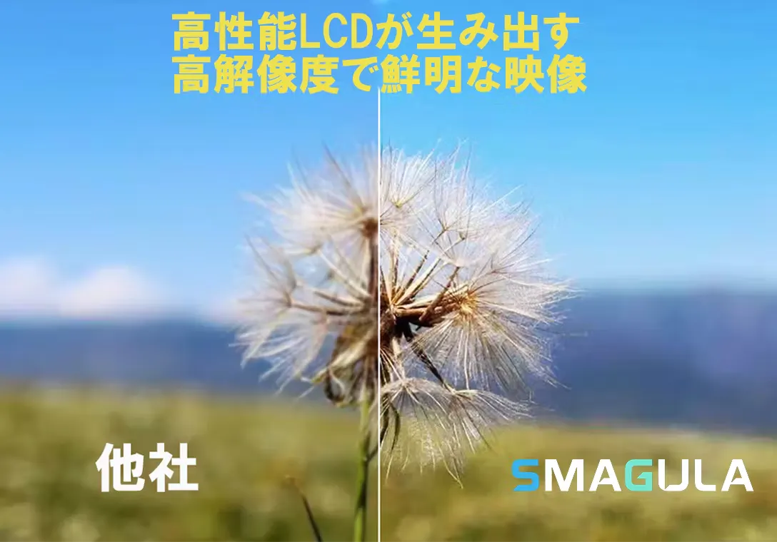 PPI 1058で2.1"1600 ×1600ピクセルのLCDを使用しています。高解像度で鮮明な映像を快適に観られ、驚きの発見を与えてくれます。60HzリフレッシュレートのSMAGULAは応答速度が速く、ゲームをまったく新しい体験に進化させます。