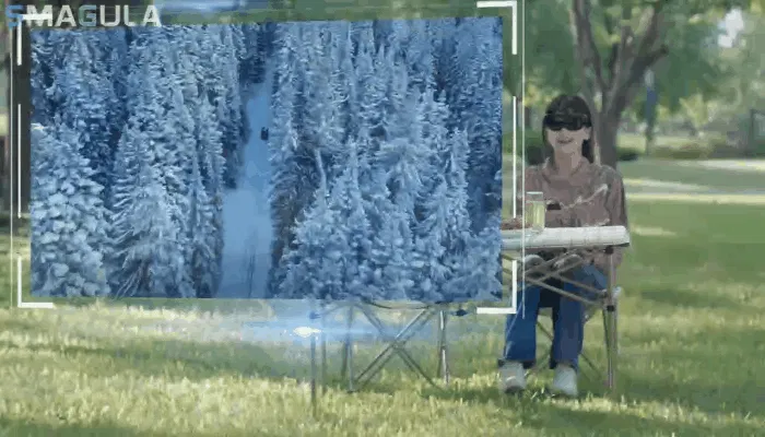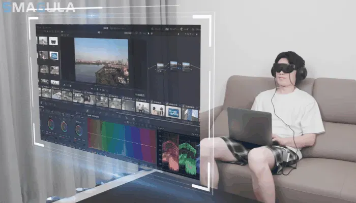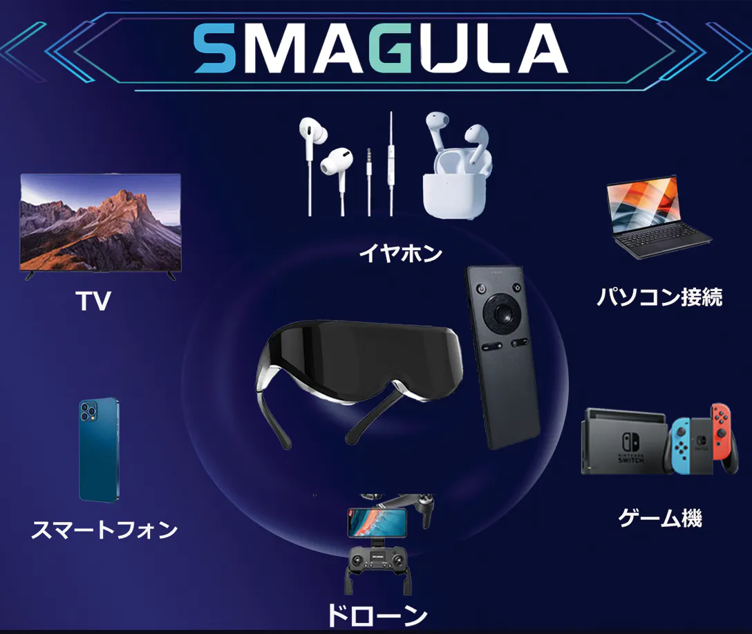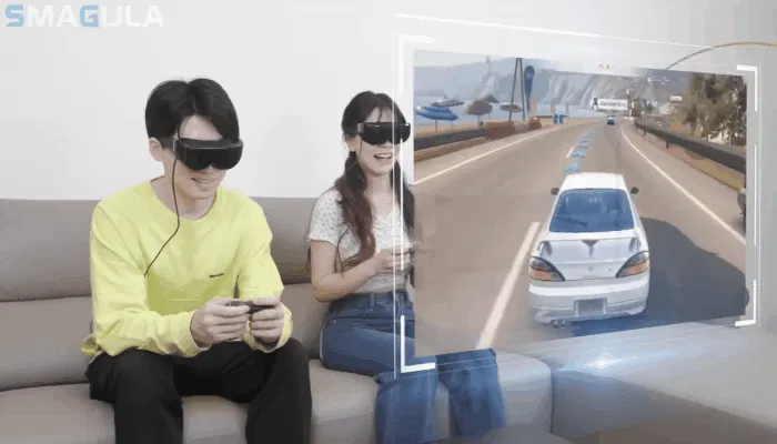 SMAGULAはFOV68°の視野角で通常の映画館450インチ相当の巨大スクリーンをゴーグル内で体感できます。