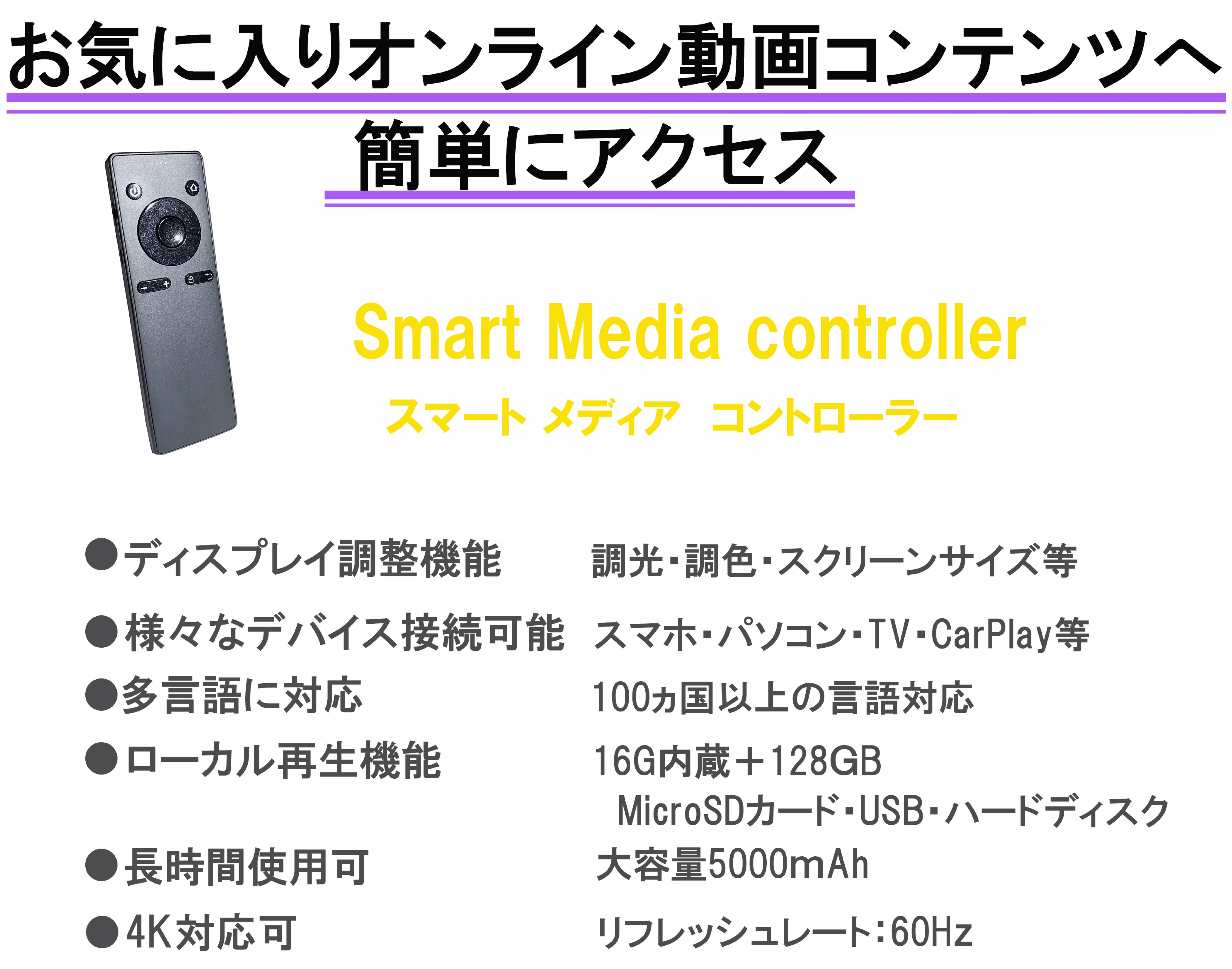 SMAGULA 3Dメディアコントローラーには4K画像の処理機能があり、4Kの動画対応可能です。
