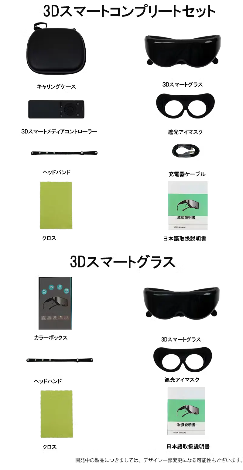 ご注意:グラス単体ご購入の場合は、スクリーンのサイズが調整できないため、ご視聴の動画により画面の四隅が多少欠ける可能性もございます。
