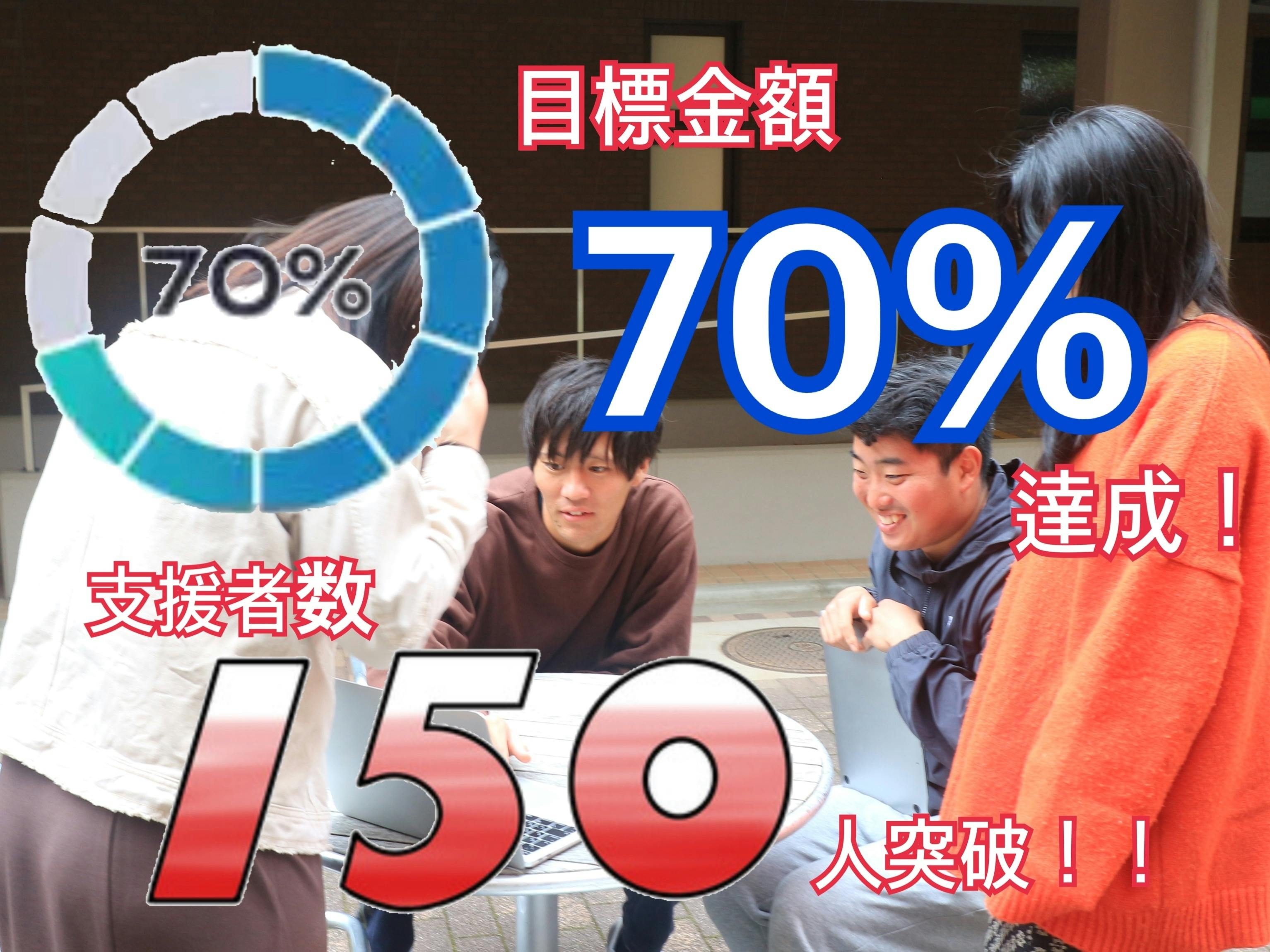 本日、プロジェクト開始から2週間目の5月14日に目標金額の70%である70万円達成し、合計支援者数も150人を突破しました!!