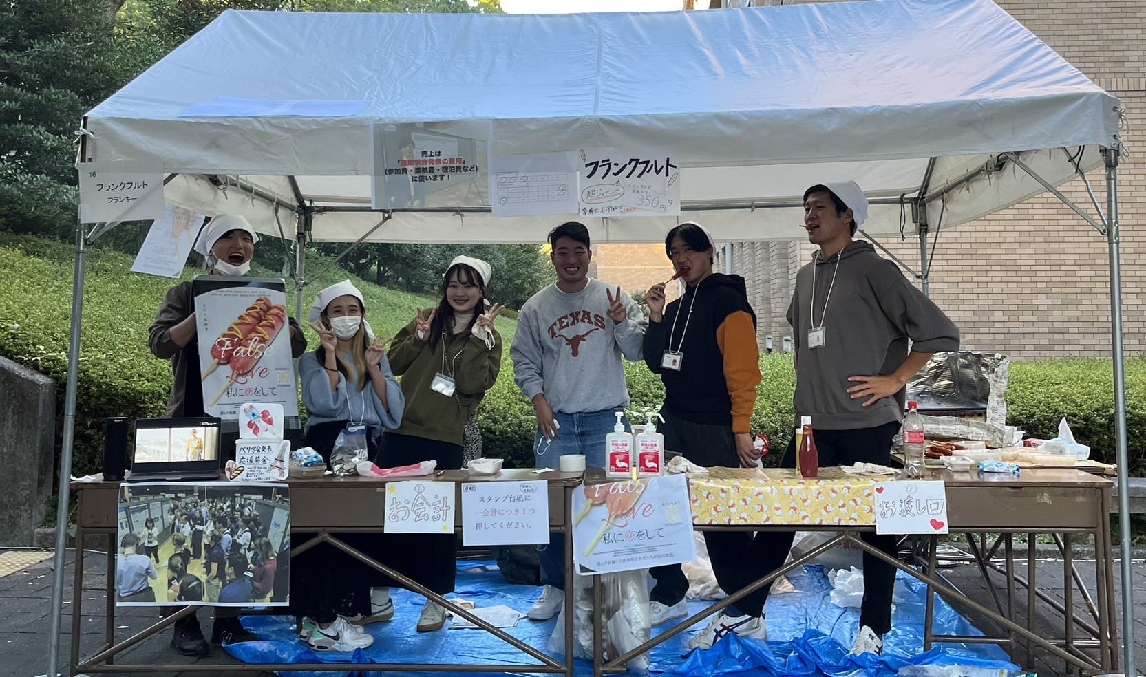昨年2022年11月5日6日に同志社大学京田辺キャンパスで同志社大学の二大学園祭の一つである、クローバー祭りが開催されました。同志社大学クローバー祭は、大学生のみならず地域住民の方々が多く集まるため、毎年、部活動やサークルなど、沢山の団体が屋台形式でお店を出店しています。そこで我々簗瀬ゼミも、フランス学会発表に向けた資金調達を目的として、フランクフルト専門店「フランキー」の出店に挑戦致しました。もちろん、出店経験者は誰もおらず、食材調達や料理器具のレンタル、ポスター作製など、皆で協力し合って1から作り上げていき、出店までの準備期間は約3か月にも及びました。