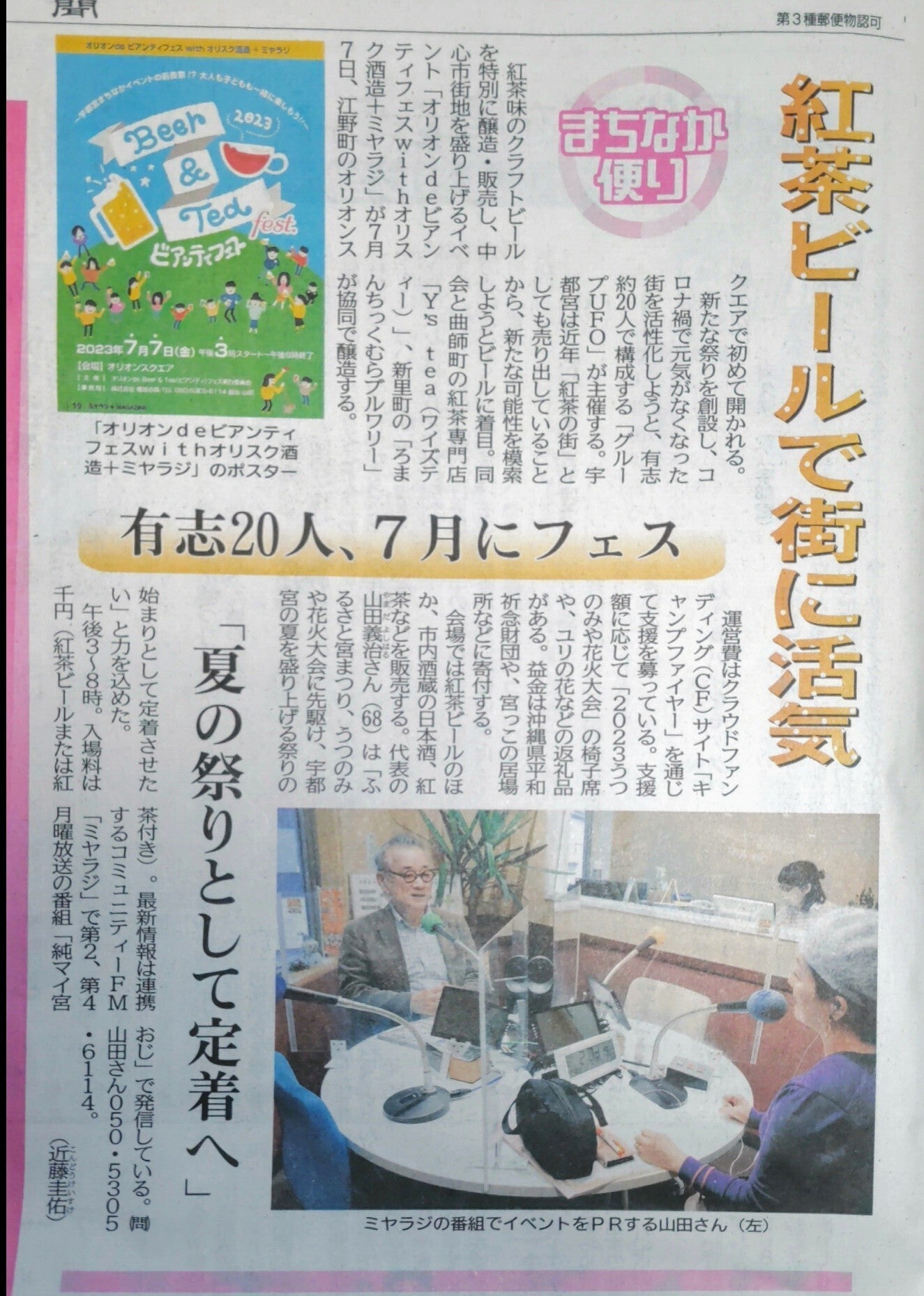 オリオンdeビアンティフェスの記事が今朝の下野新聞に掲載して頂きました(^^)/29日はグループUFOメンバー参加可能な方々に集まって頂きメロディハウスでビール講座と作戦会議。25年来の夢実現に向けて一歩ずつ前に進んでますね(^_-)